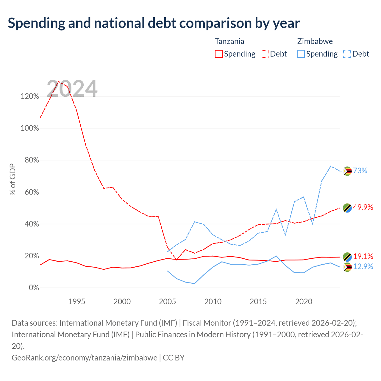 Tanzania has $39.3B in government debt (49.9% of GDP), compared to $30.3B (73% of GDP) in Zimbabwe.