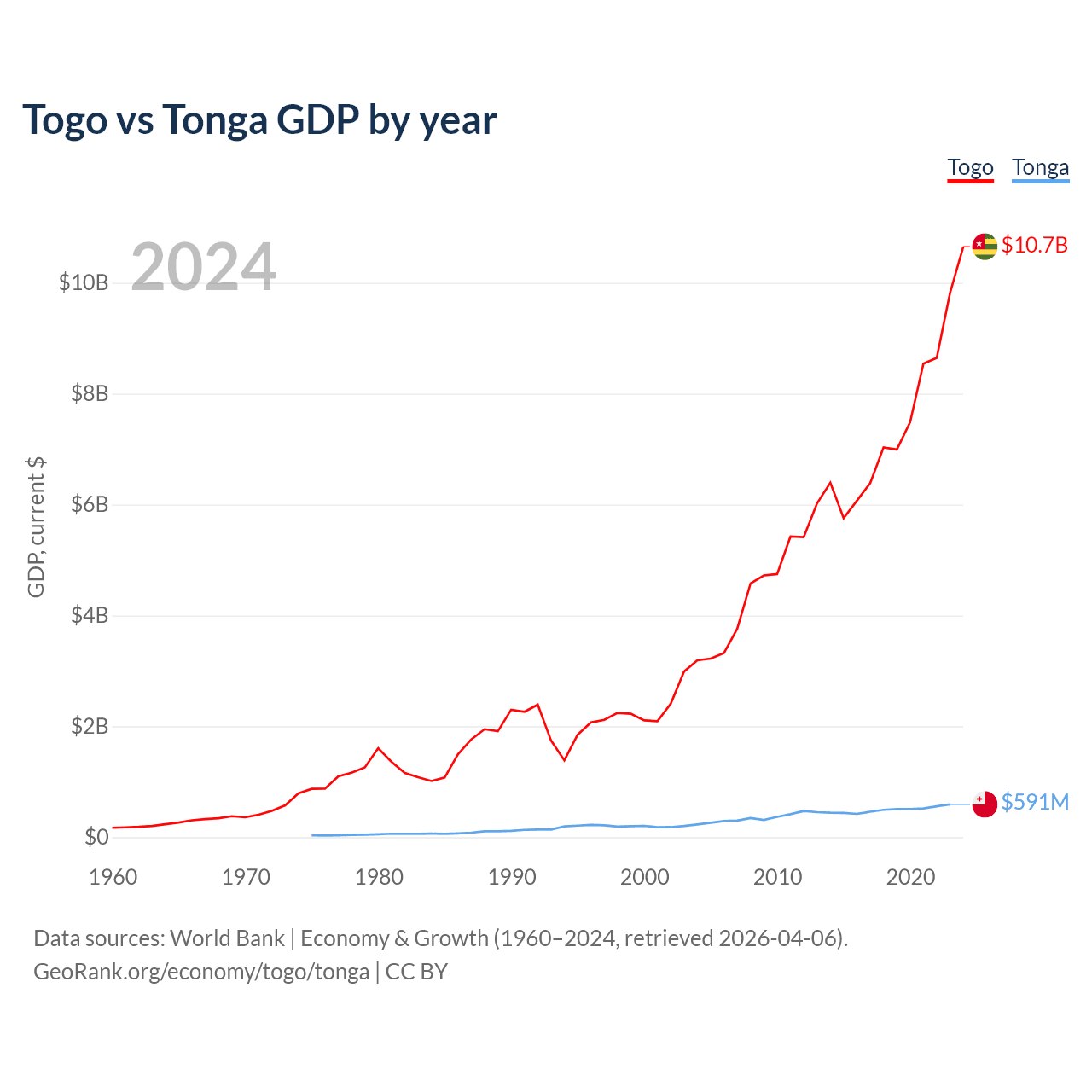 Togo vs Tonga GDP by year