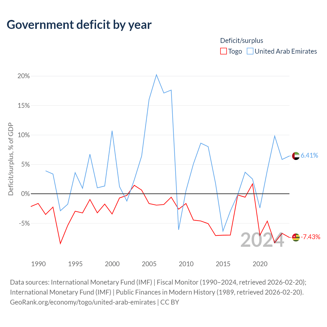 - International Monetary Fund (IMF) | Fiscal Monitor (1990–2024, retrieved 2026-02-20)