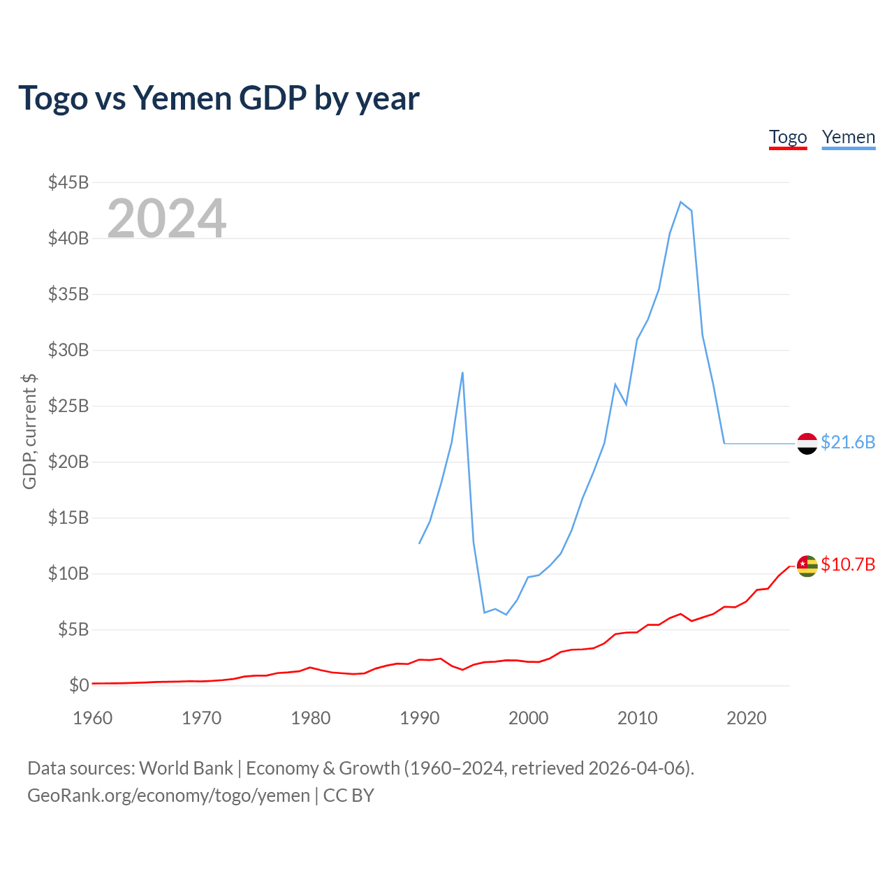 Togo vs Yemen GDP by year