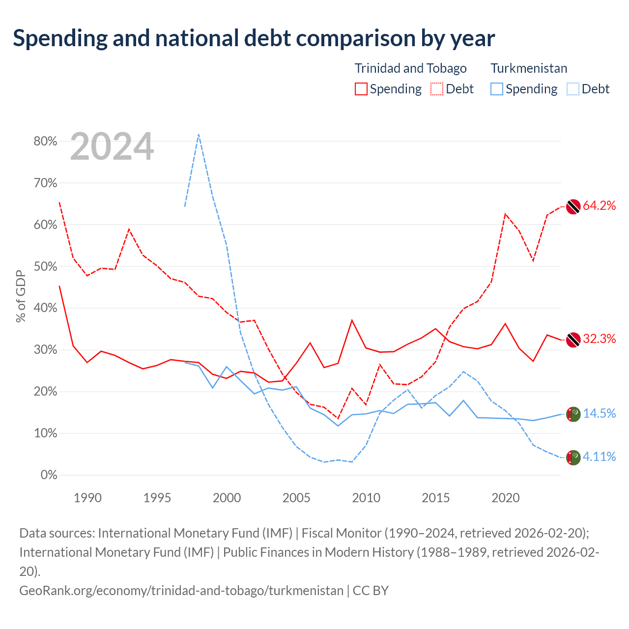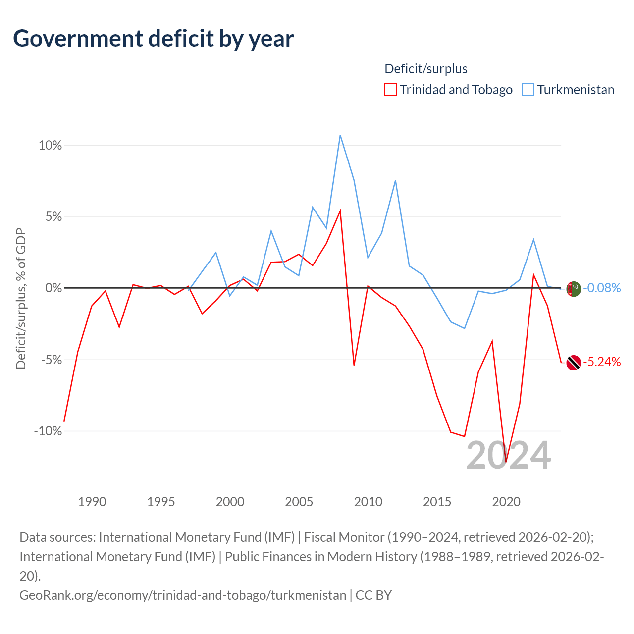 - International Monetary Fund (IMF) | Fiscal Monitor (1990–2024, retrieved 2026-02-20)
