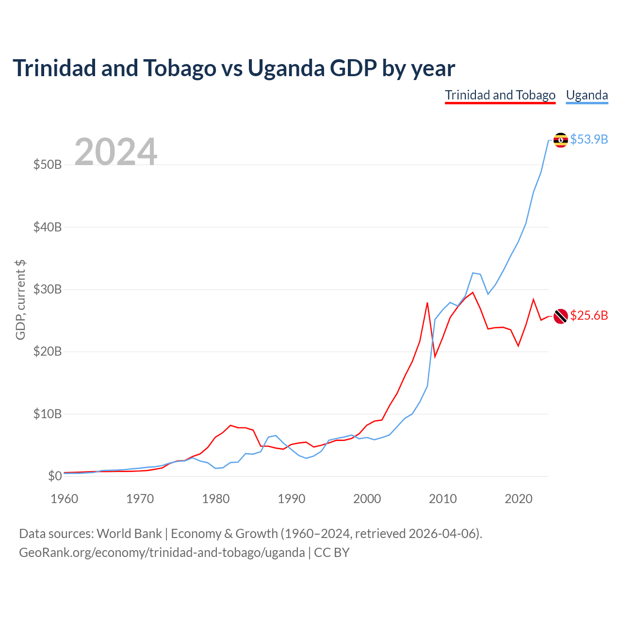 Trinidad and Tobago vs Uganda GDP by year