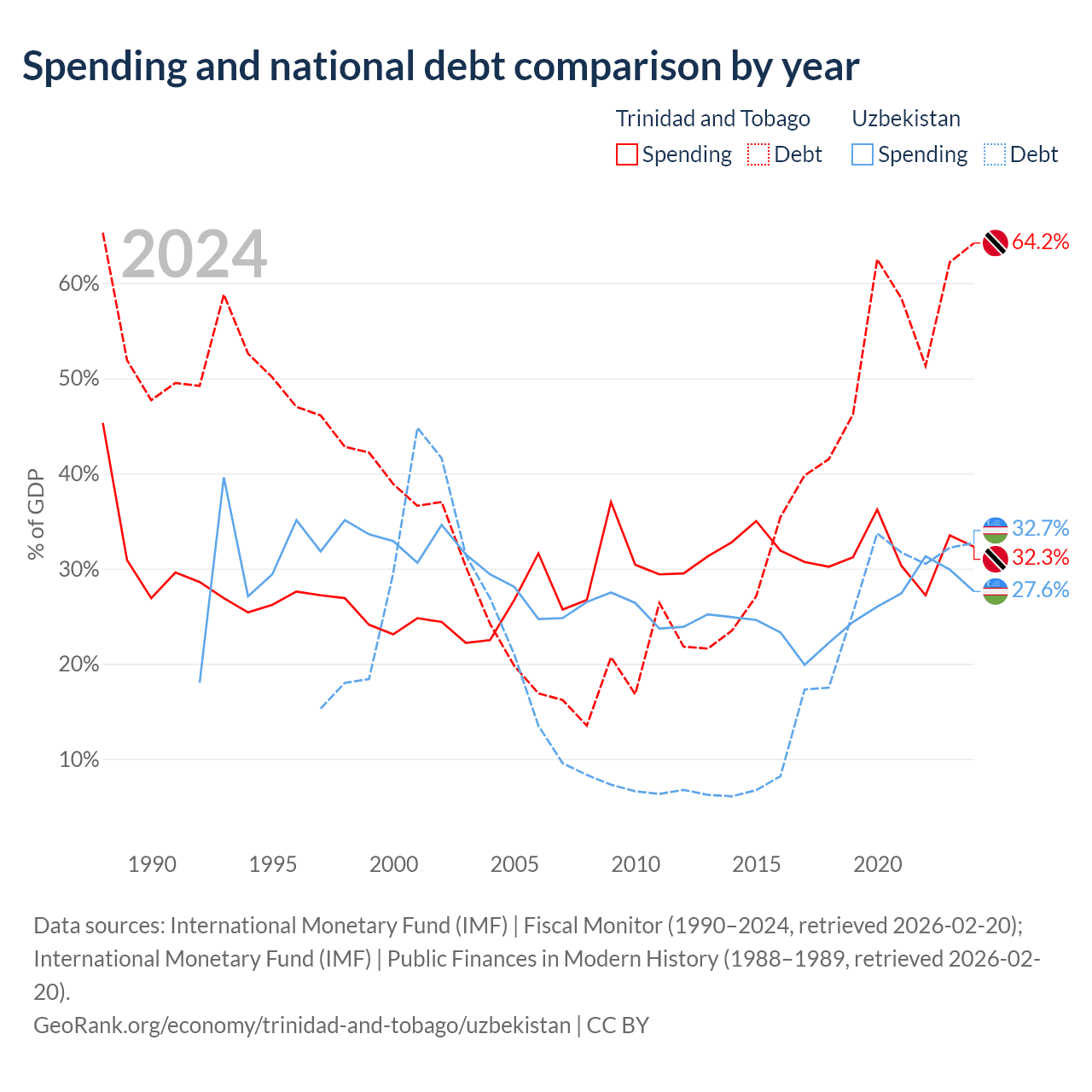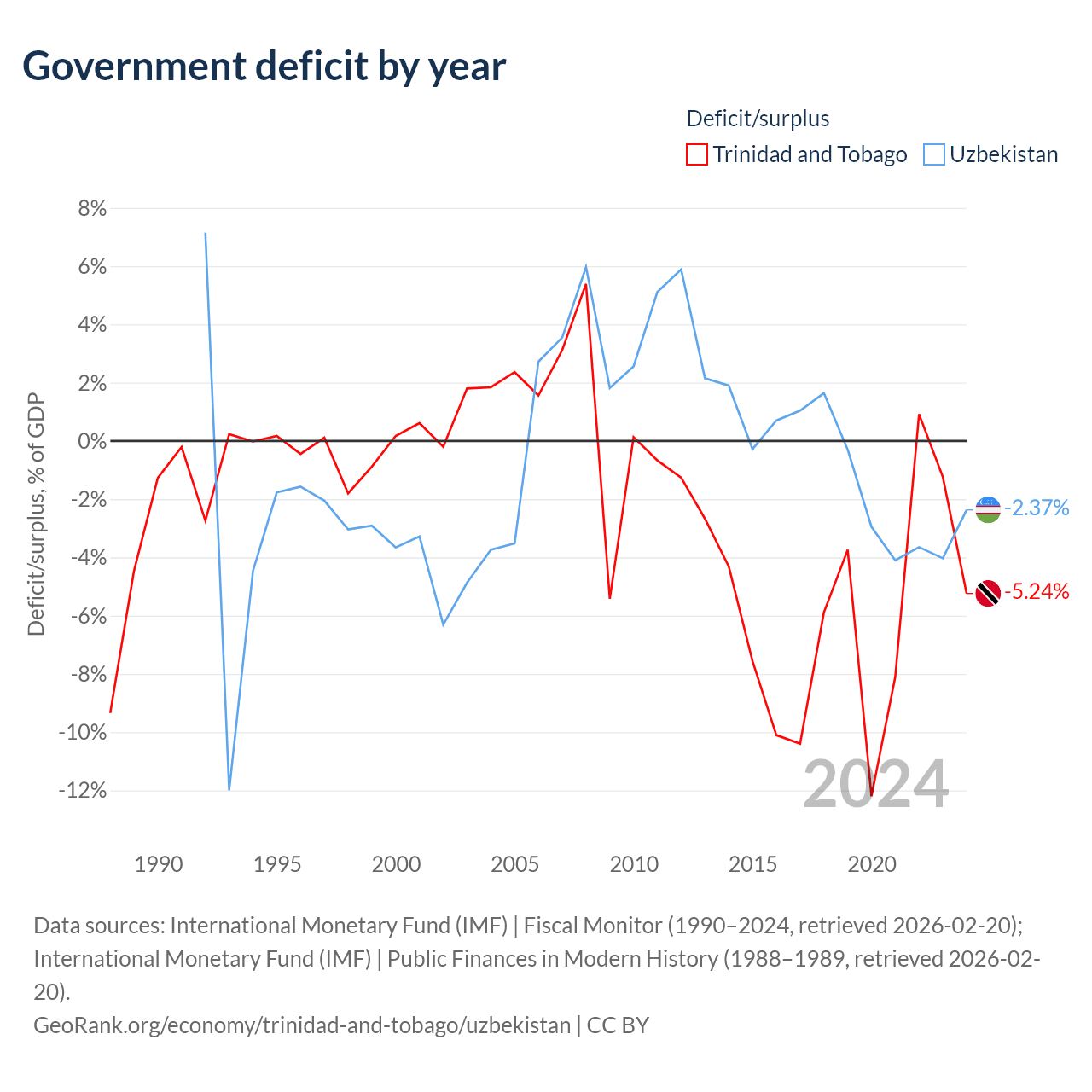 - International Monetary Fund (IMF) | Fiscal Monitor (1990–2024, retrieved 2026-02-20)