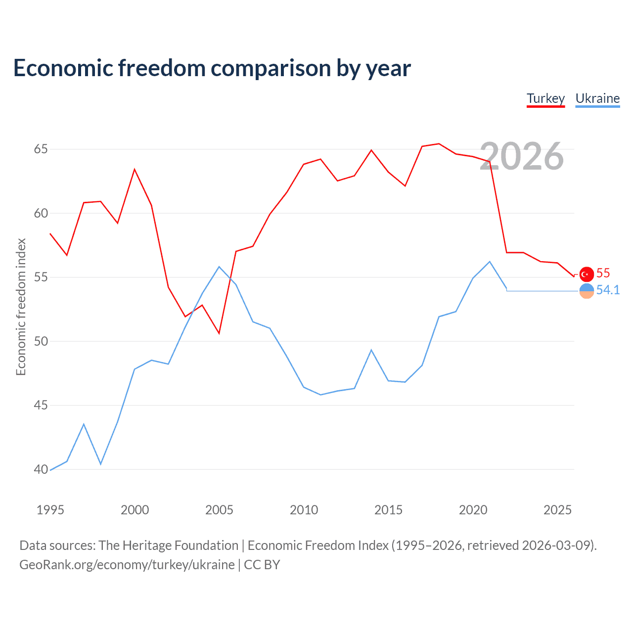 Data sources: The Heritage Foundation | Economic Freedom Index (1995–2026, retrieved 2026-03-09).