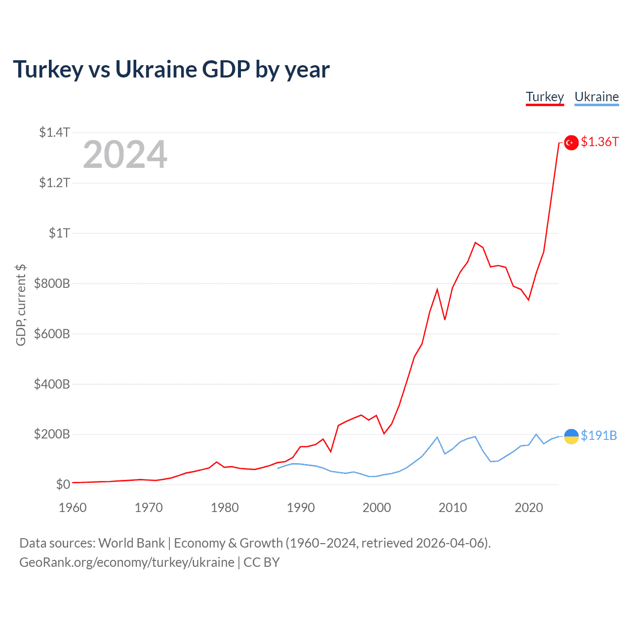 Turkey vs Ukraine GDP by year