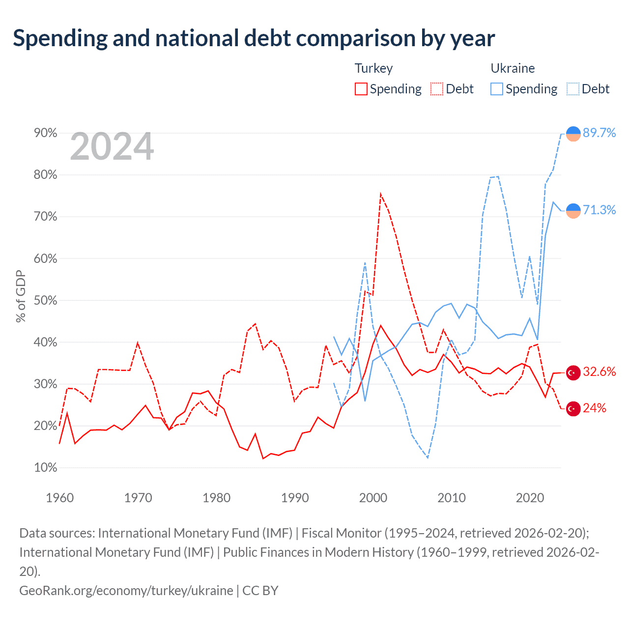 Turkey has $327B in government debt (24% of GDP), compared to $171B (89.7% of GDP) in Ukraine.
