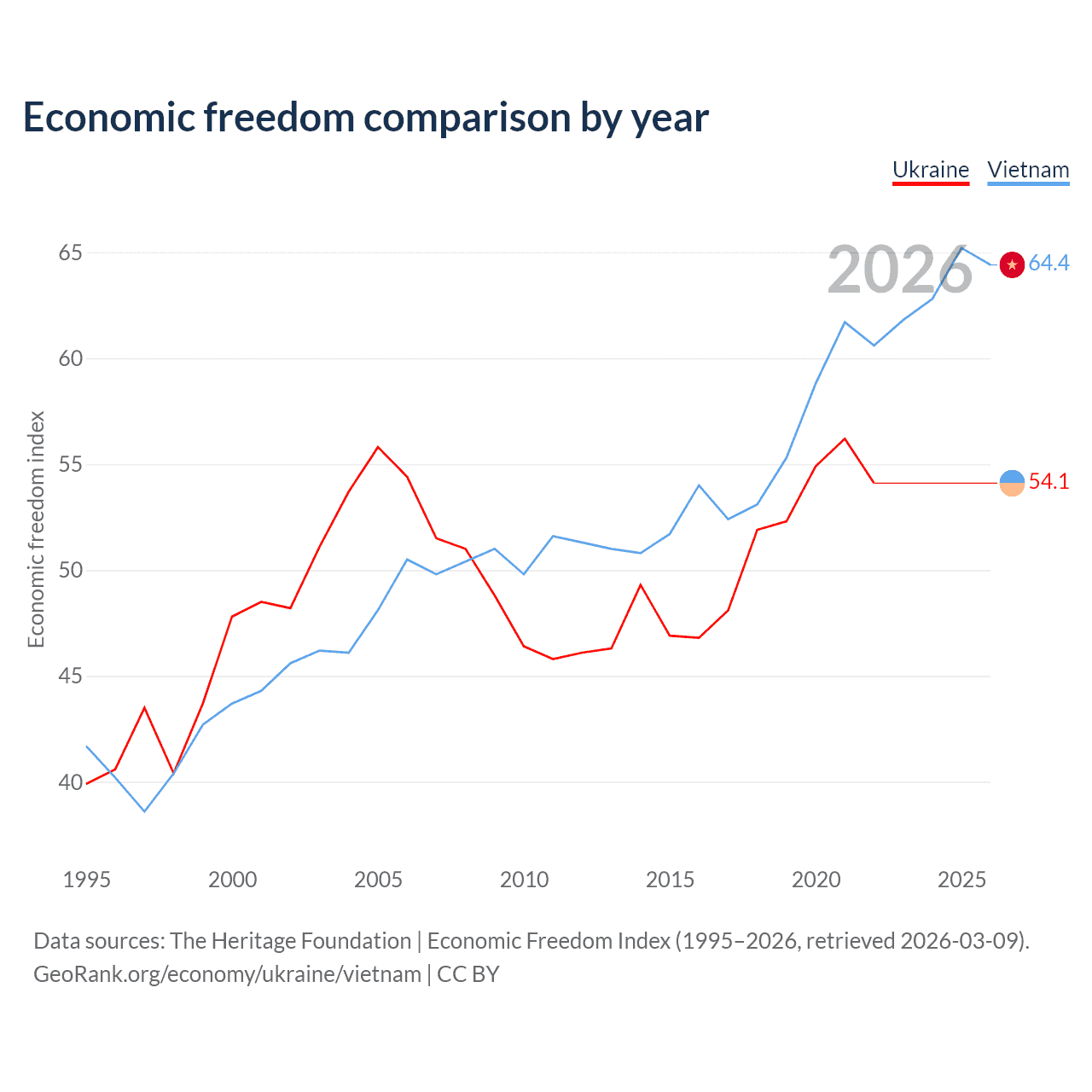 Data sources: The Heritage Foundation | Economic Freedom Index (1995–2026, retrieved 2026-03-09).