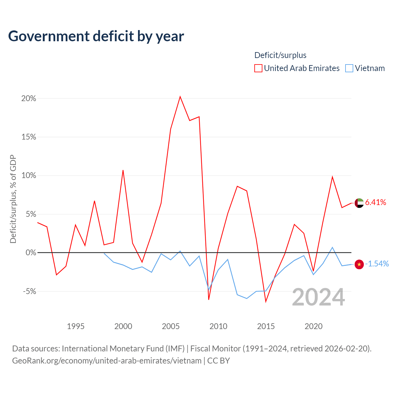 - International Monetary Fund (IMF) | Fiscal Monitor (1991–2024, retrieved 2026-02-20)