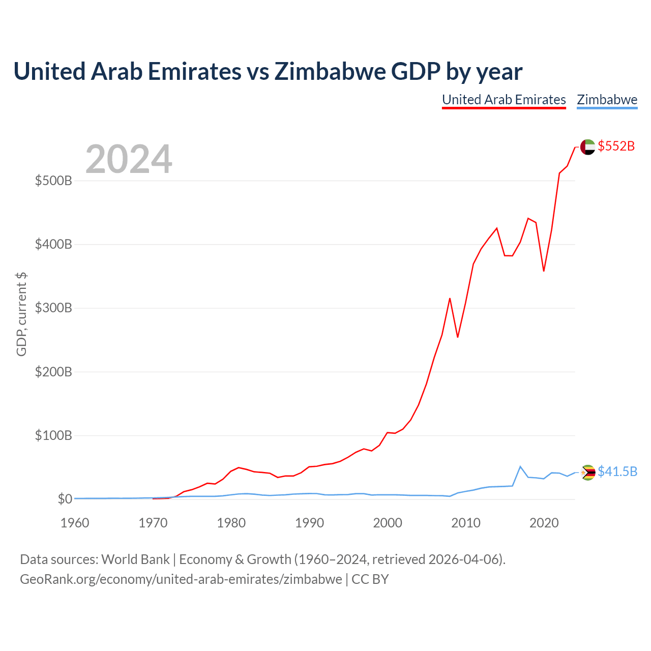 United Arab Emirates vs Zimbabwe GDP by year