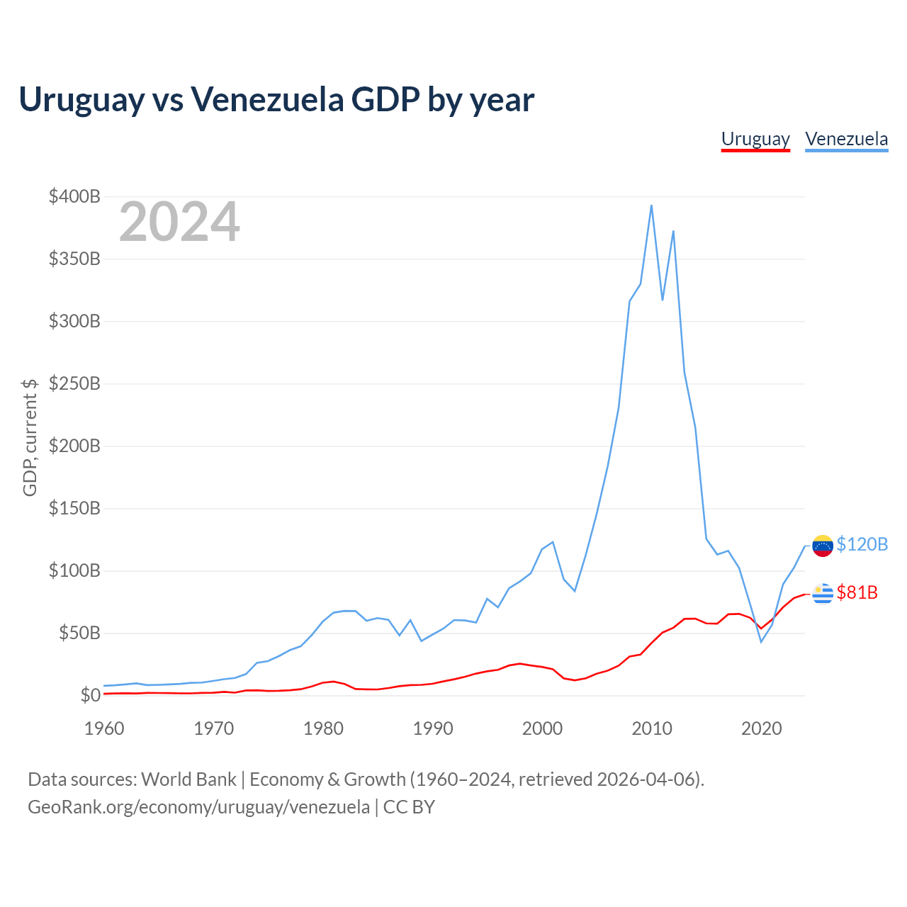 Uruguay vs Venezuela GDP by year