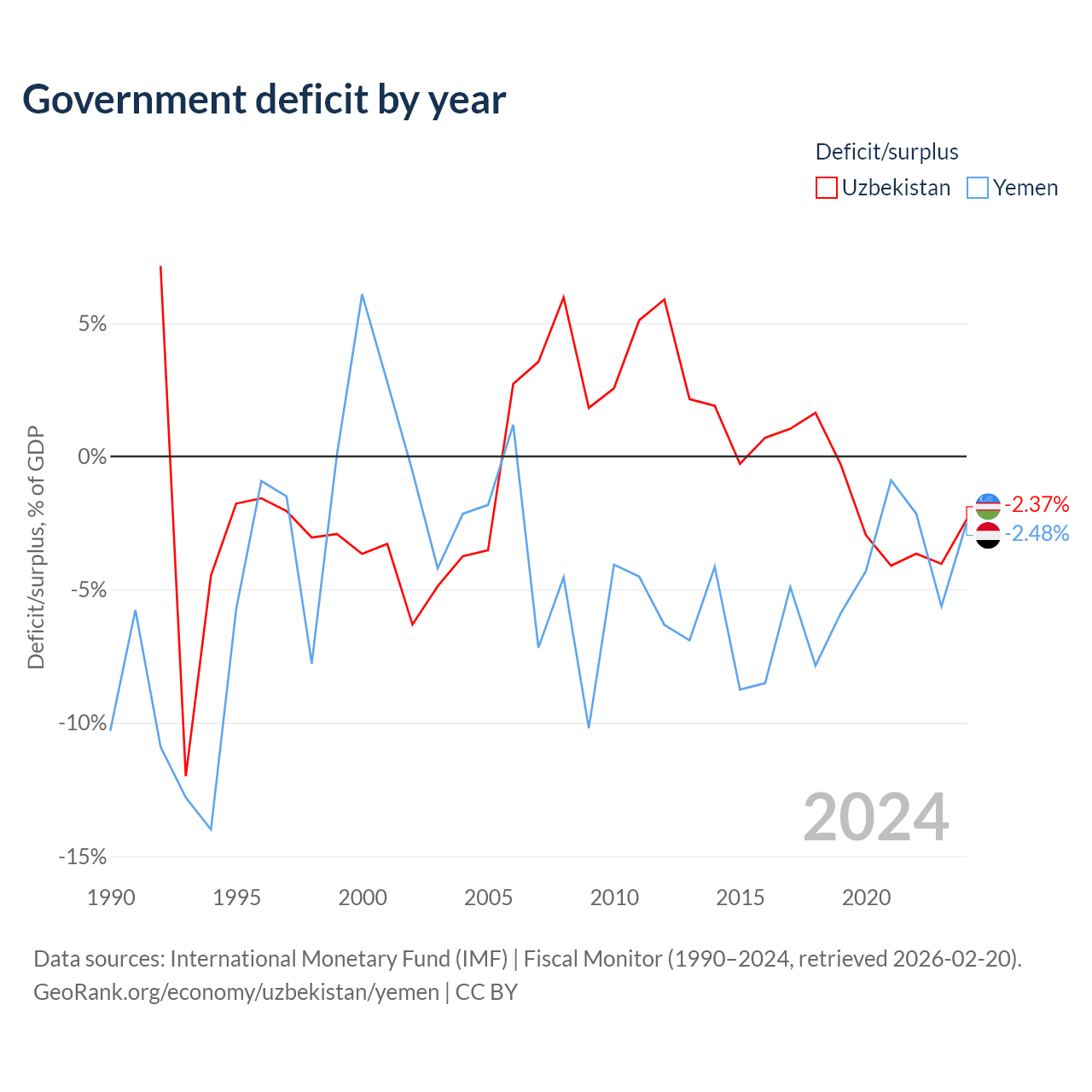 - International Monetary Fund (IMF) | Fiscal Monitor (1990–2024, retrieved 2026-02-20)