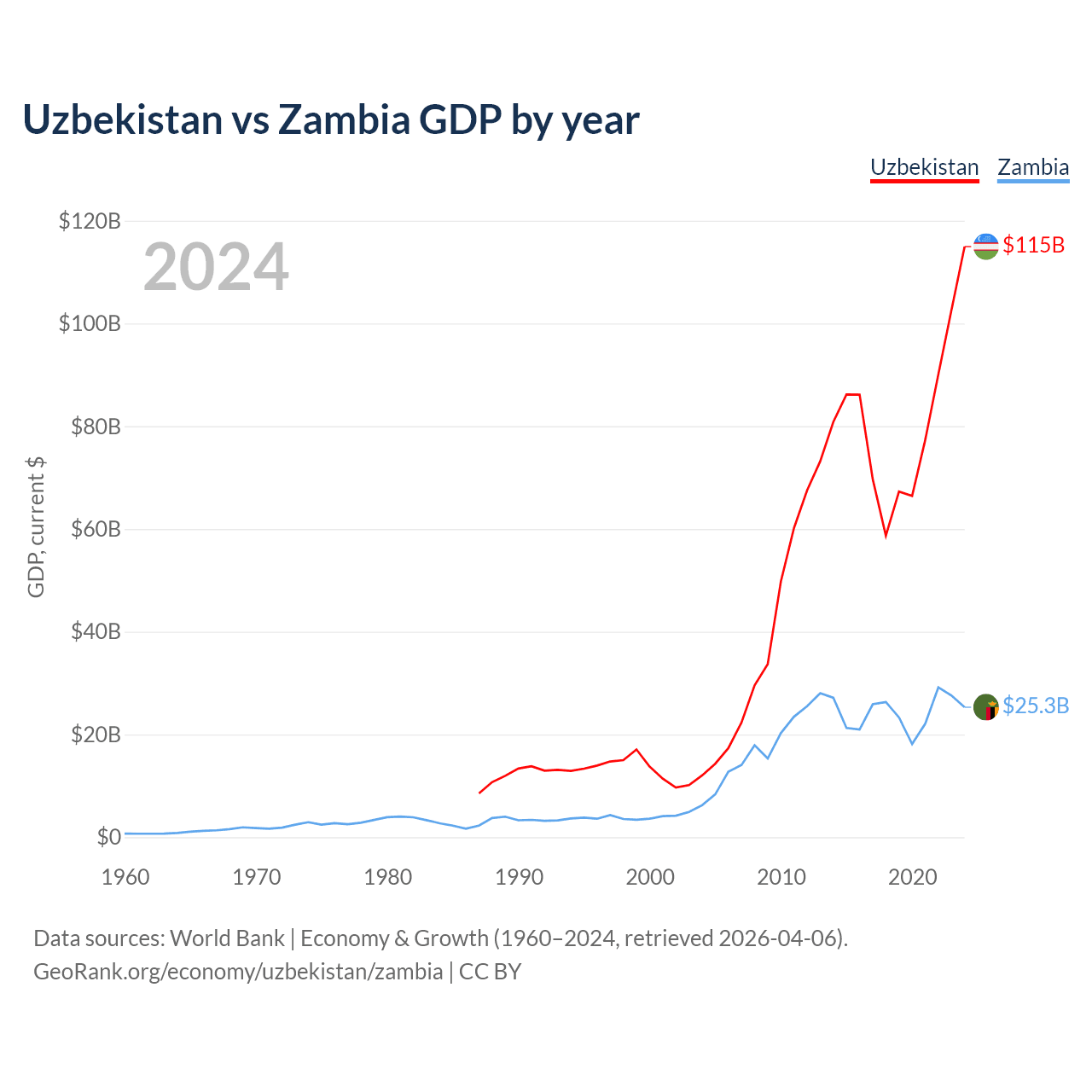 Uzbekistan vs Zambia GDP by year