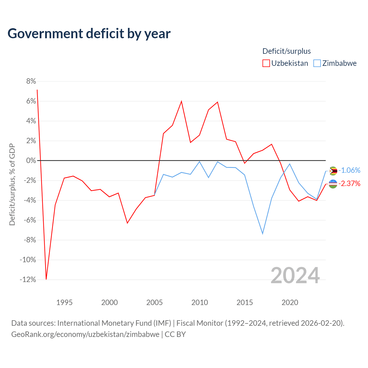 - International Monetary Fund (IMF) | Fiscal Monitor (1992–2024, retrieved 2026-02-20)