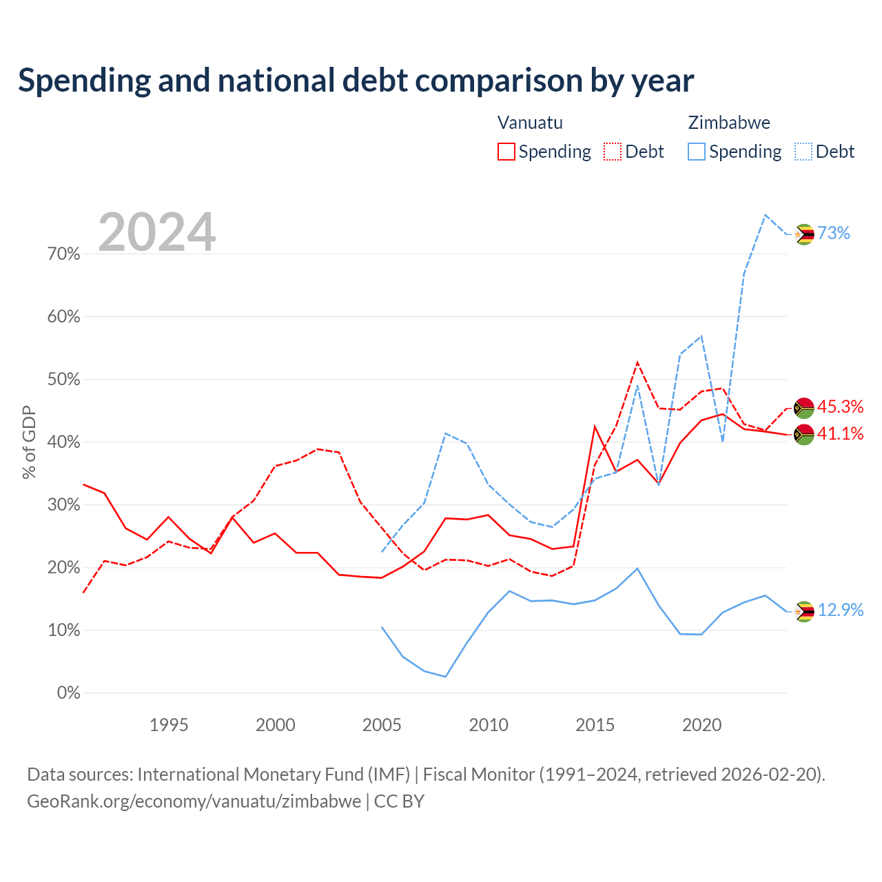 Vanuatu has $507M in government debt (45.3% of GDP), compared to $30.3B (73% of GDP) in Zimbabwe.