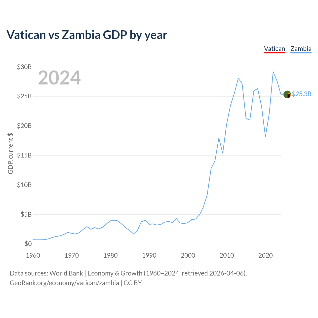 Vatican vs Zambia GDP by year