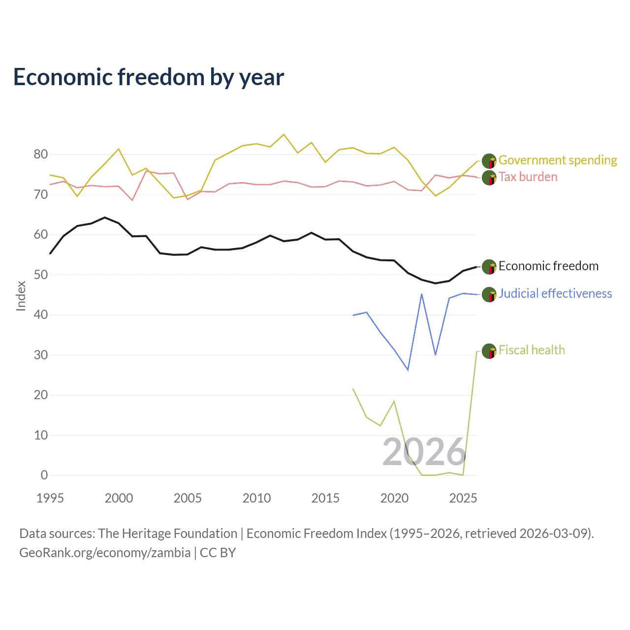 Data sources: The Heritage Foundation | Economic Freedom Index (1995–2026, retrieved 2026-03-09).