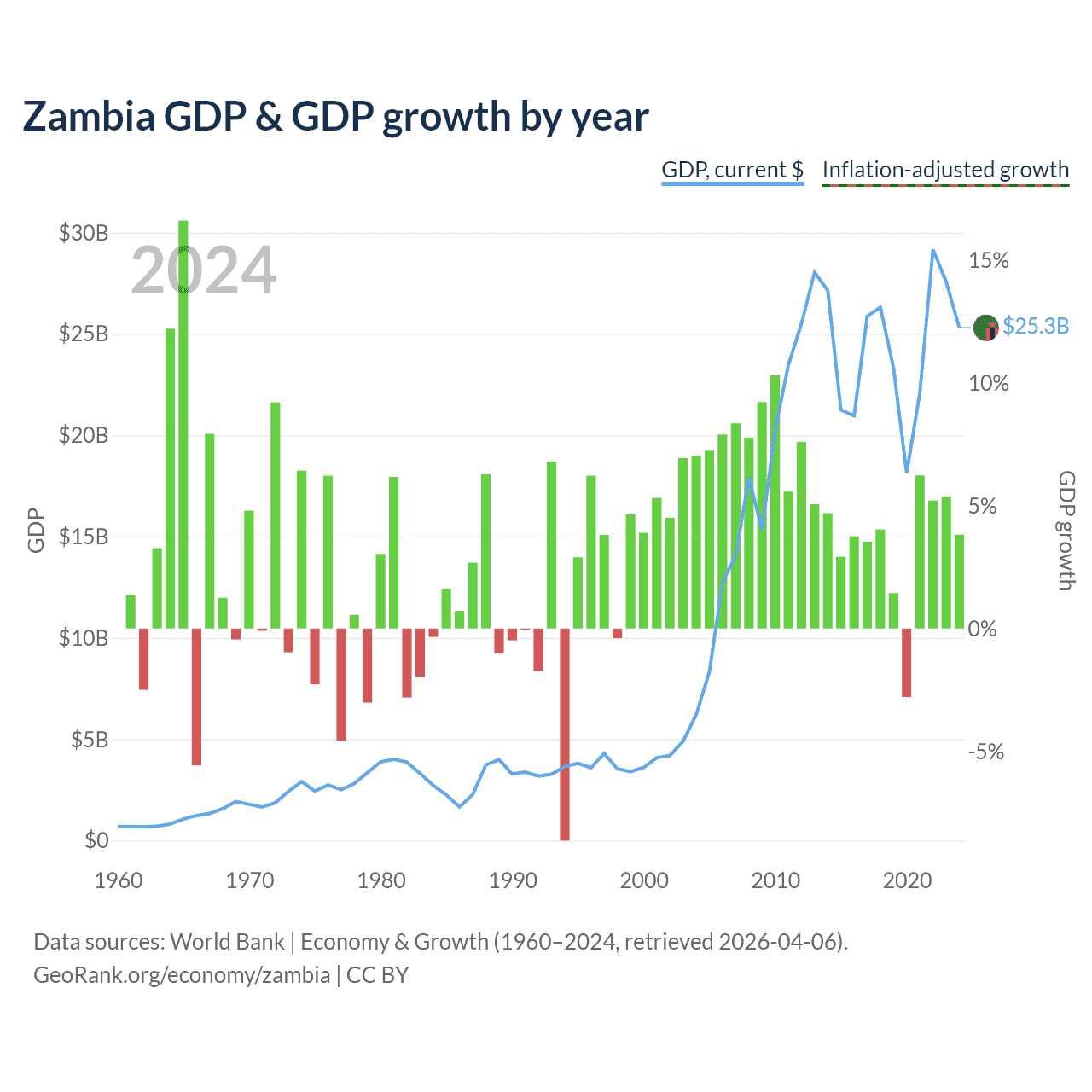 Zambia GDP & GDP growth by year