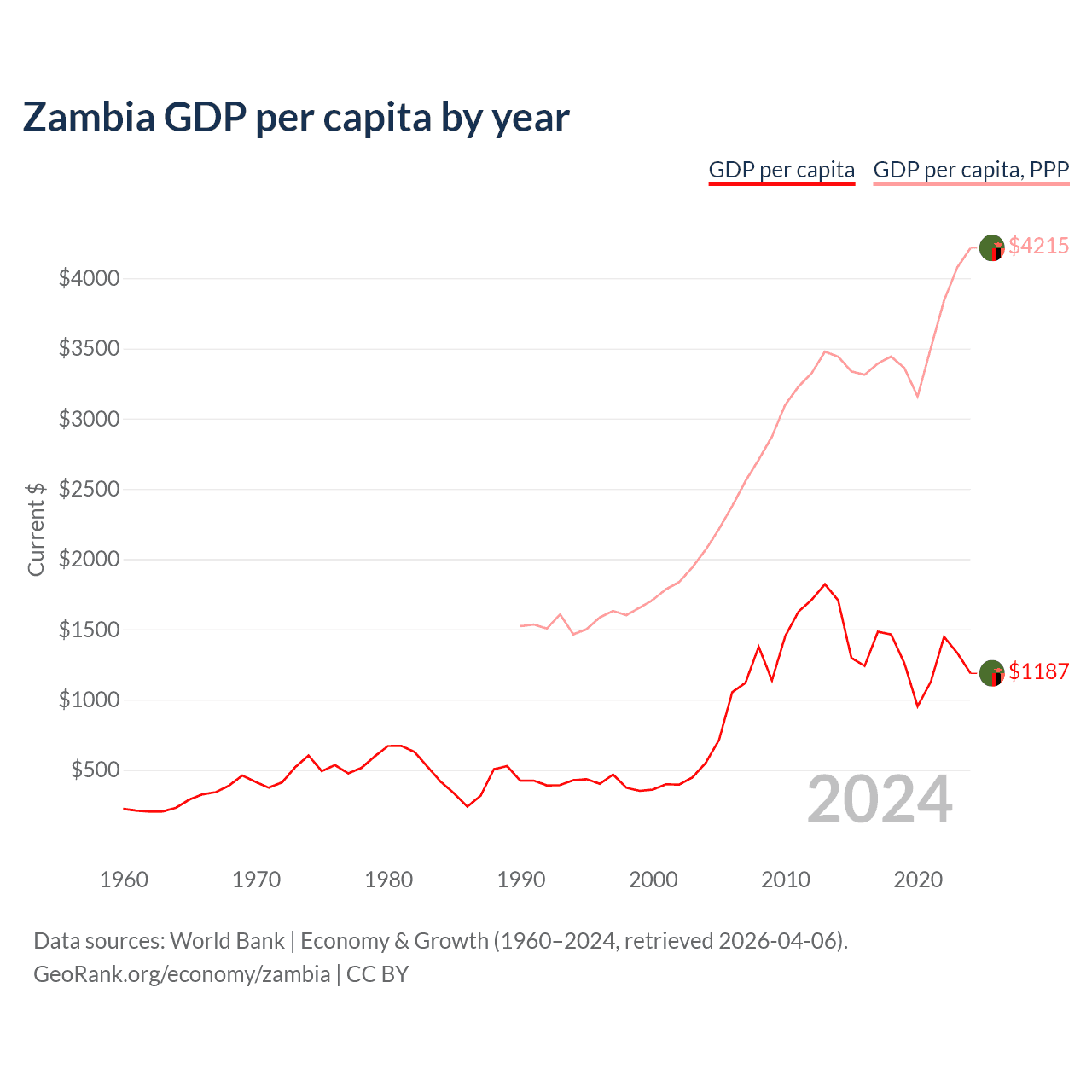Zambia GDP per capita by year