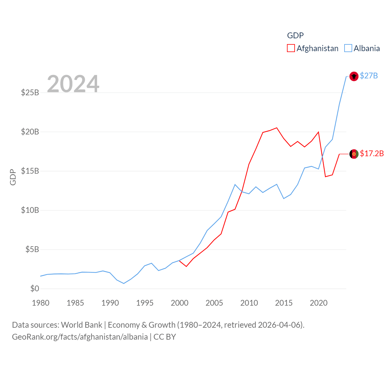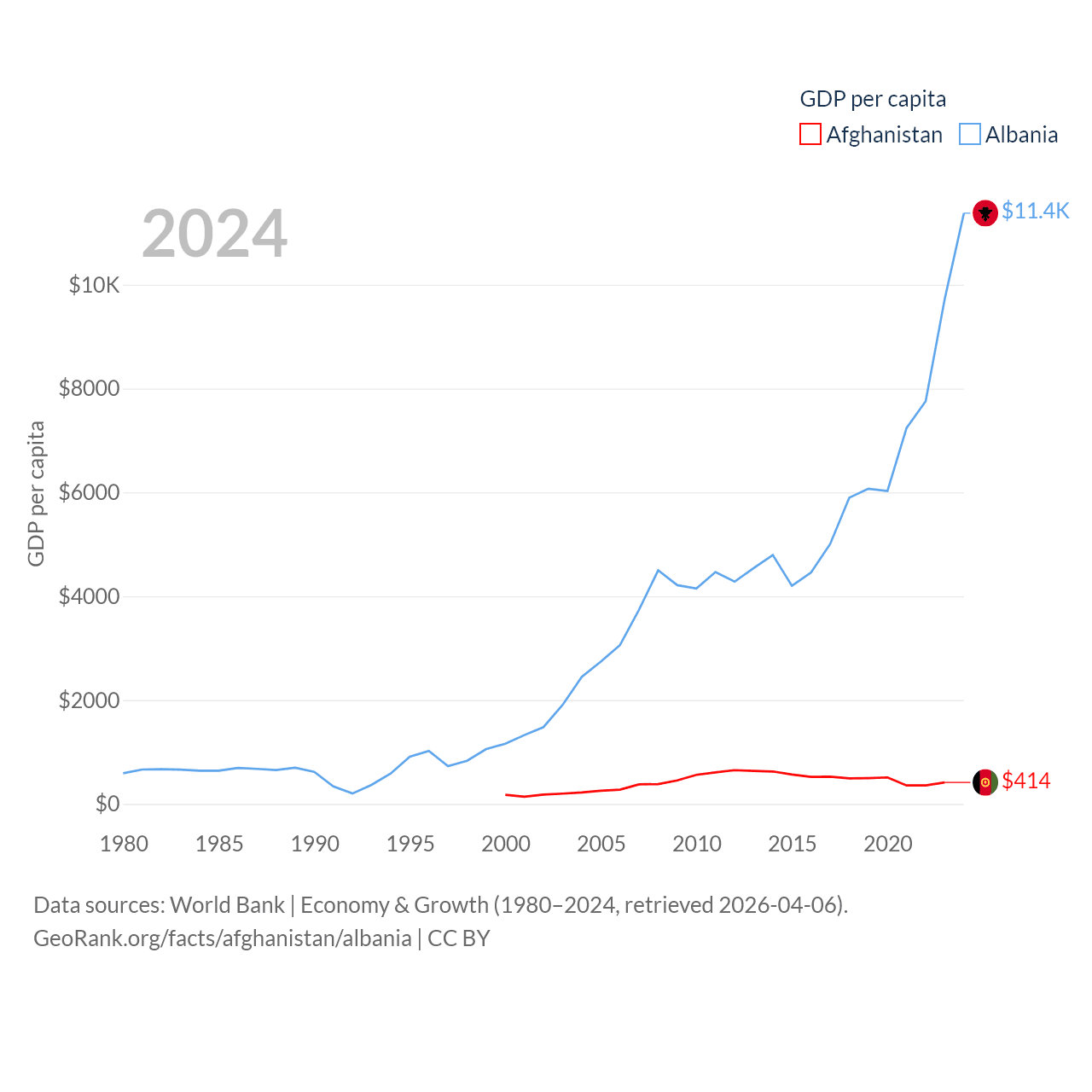 Data sources: World Bank | Economy & Growth (1980–2024, retrieved 2026-04-06).