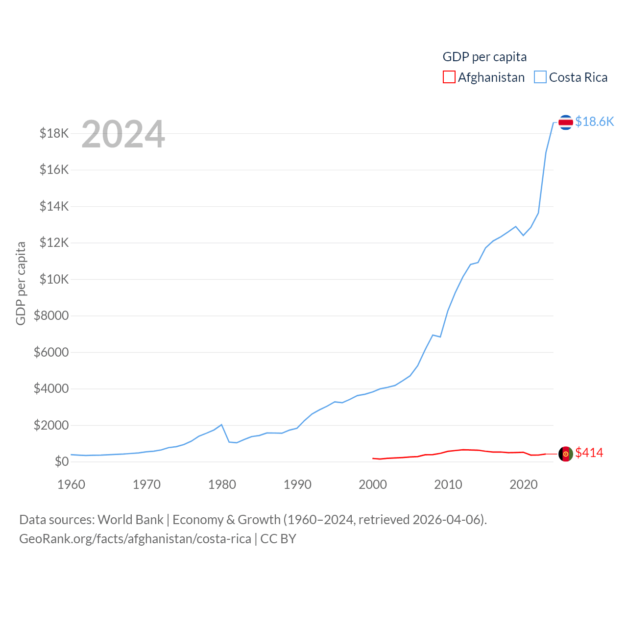 Afghanistan and Costa Rica economies compared