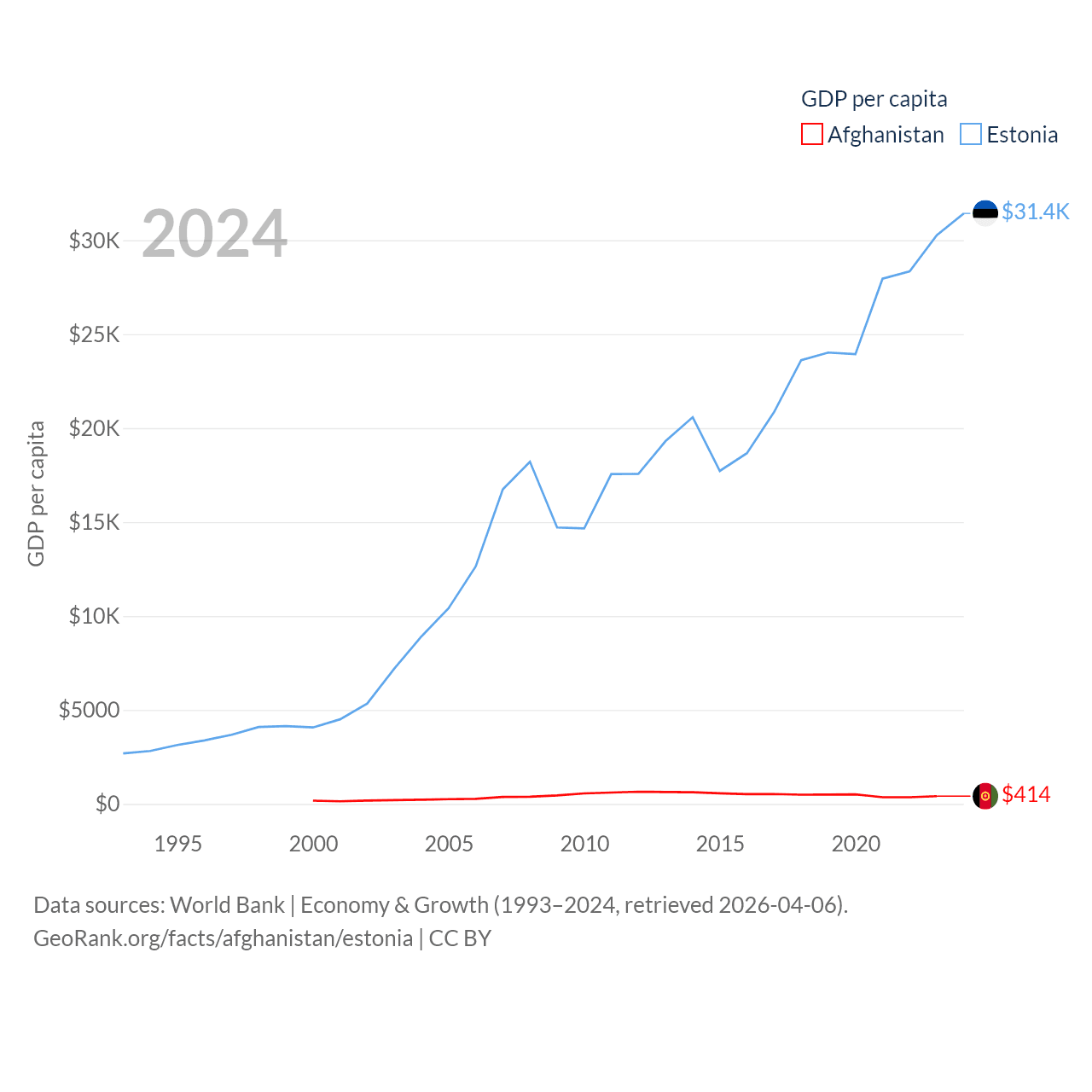 Data sources: World Bank | Economy & Growth (1993–2024, retrieved 2026-04-06).