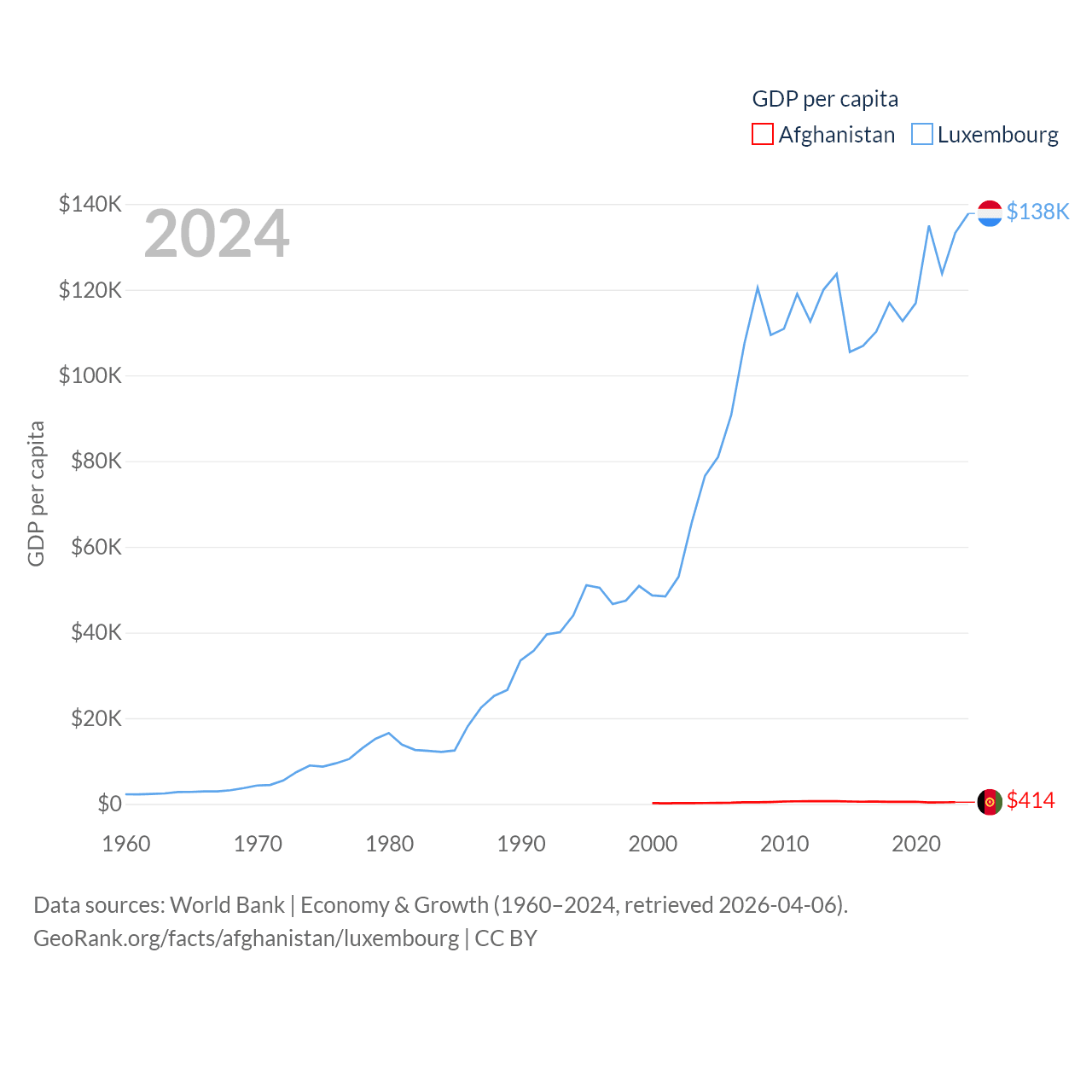 Afghanistan and Luxembourg economies compared