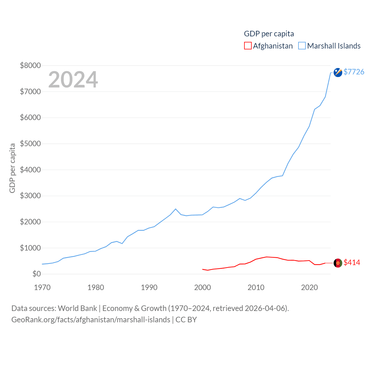 Afghanistan and Marshall Islands economies compared