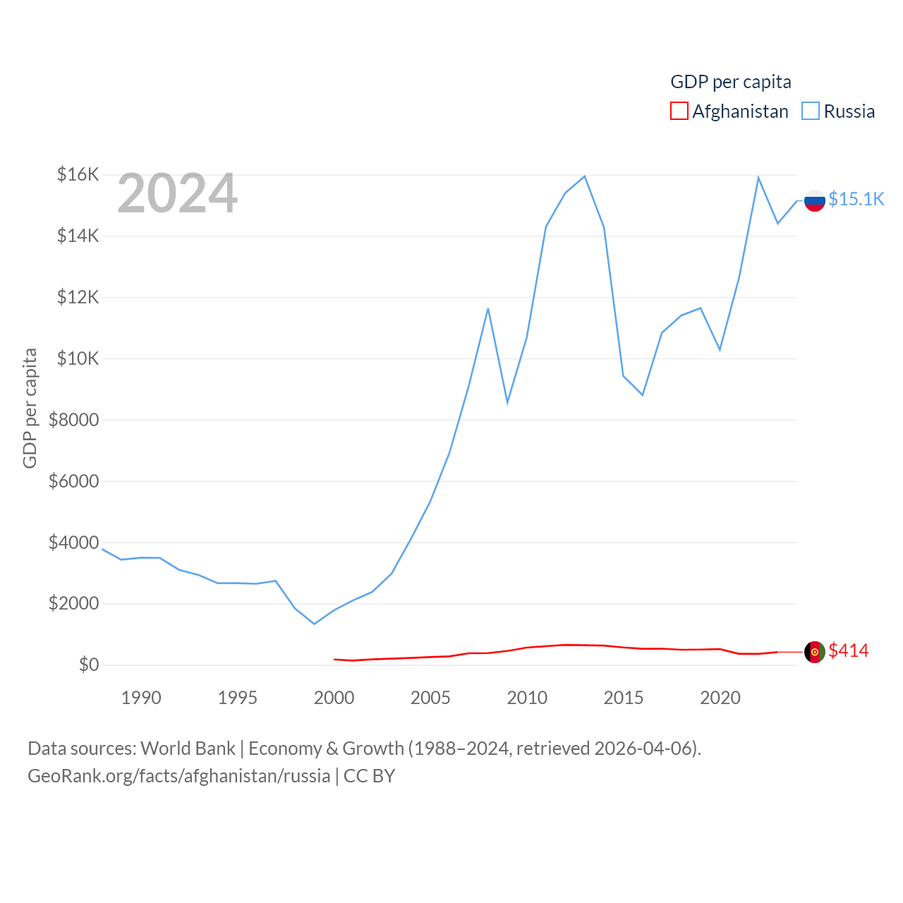 Data sources: World Bank | Economy & Growth (1988–2024, retrieved 2026-04-06).