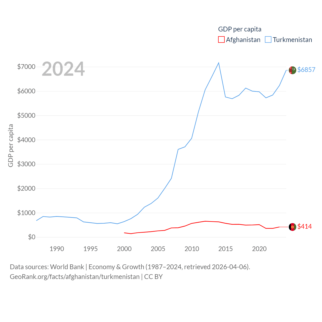 Data sources: World Bank | Economy & Growth (1987–2024, retrieved 2026-04-06).