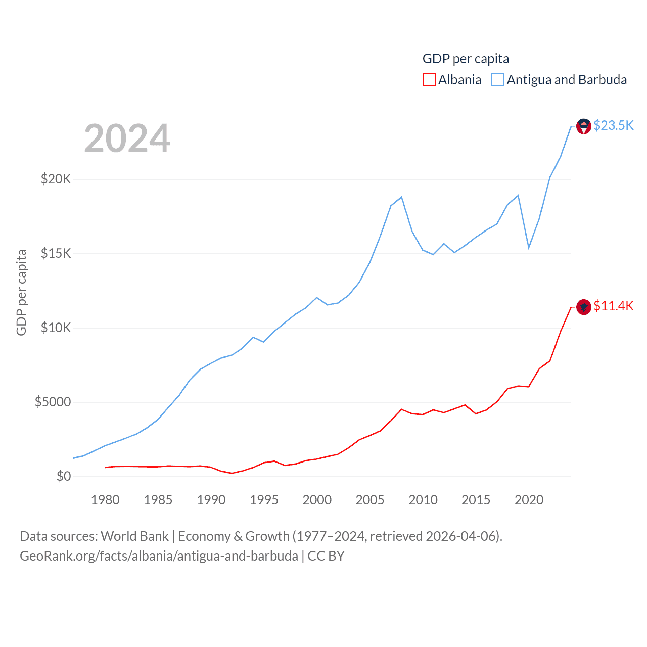 Albania and Antigua and Barbuda economies compared