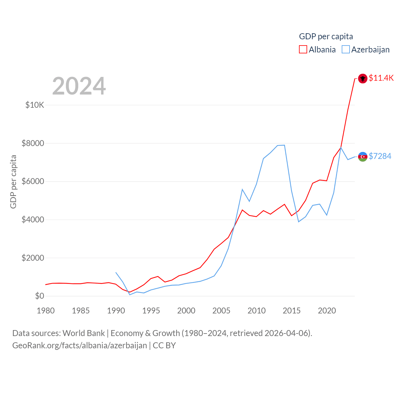Data sources: World Bank | Economy & Growth (1980–2024, retrieved 2026-04-06).
