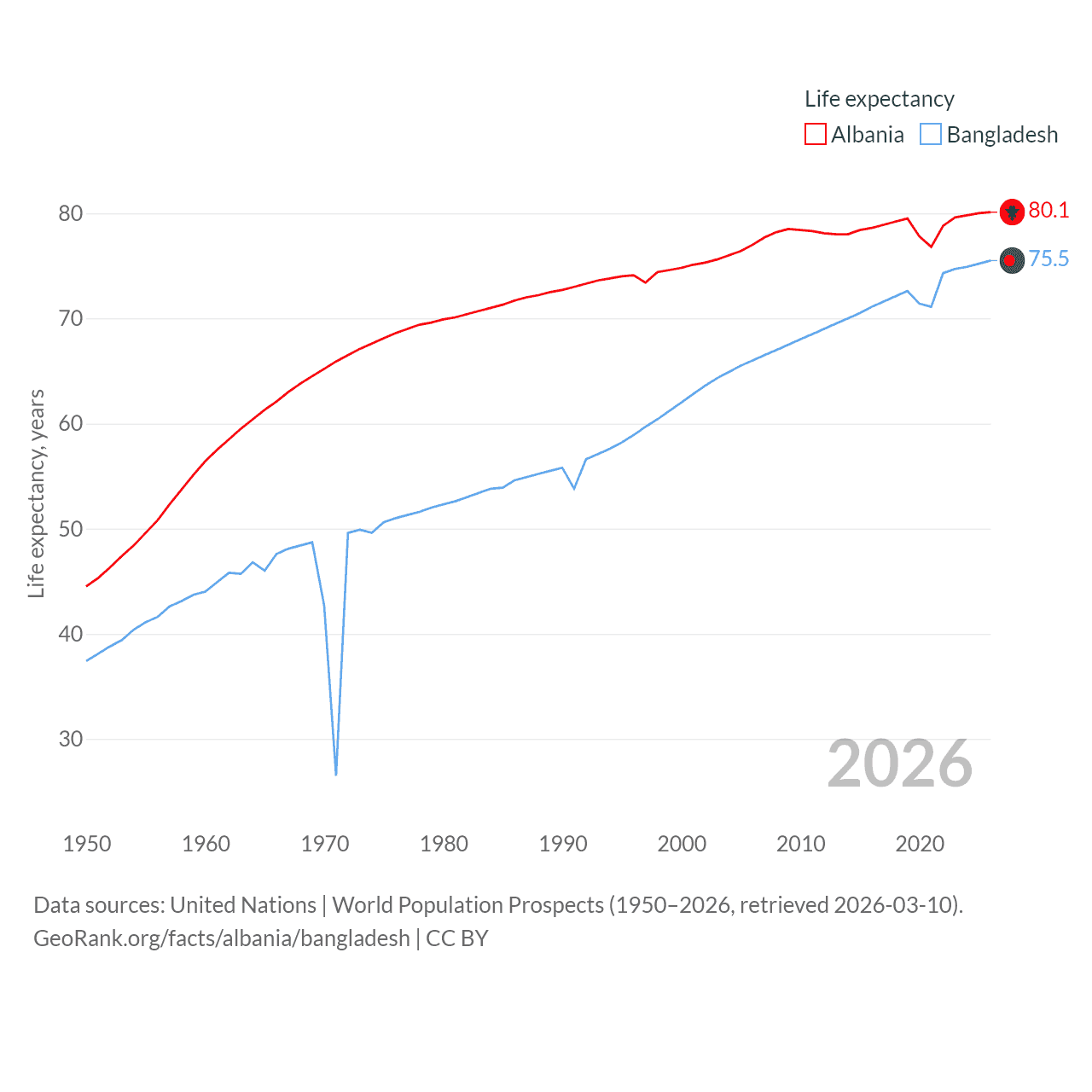 - United Nations | World Population Prospects (1950–2026, retrieved 2026-03-10)