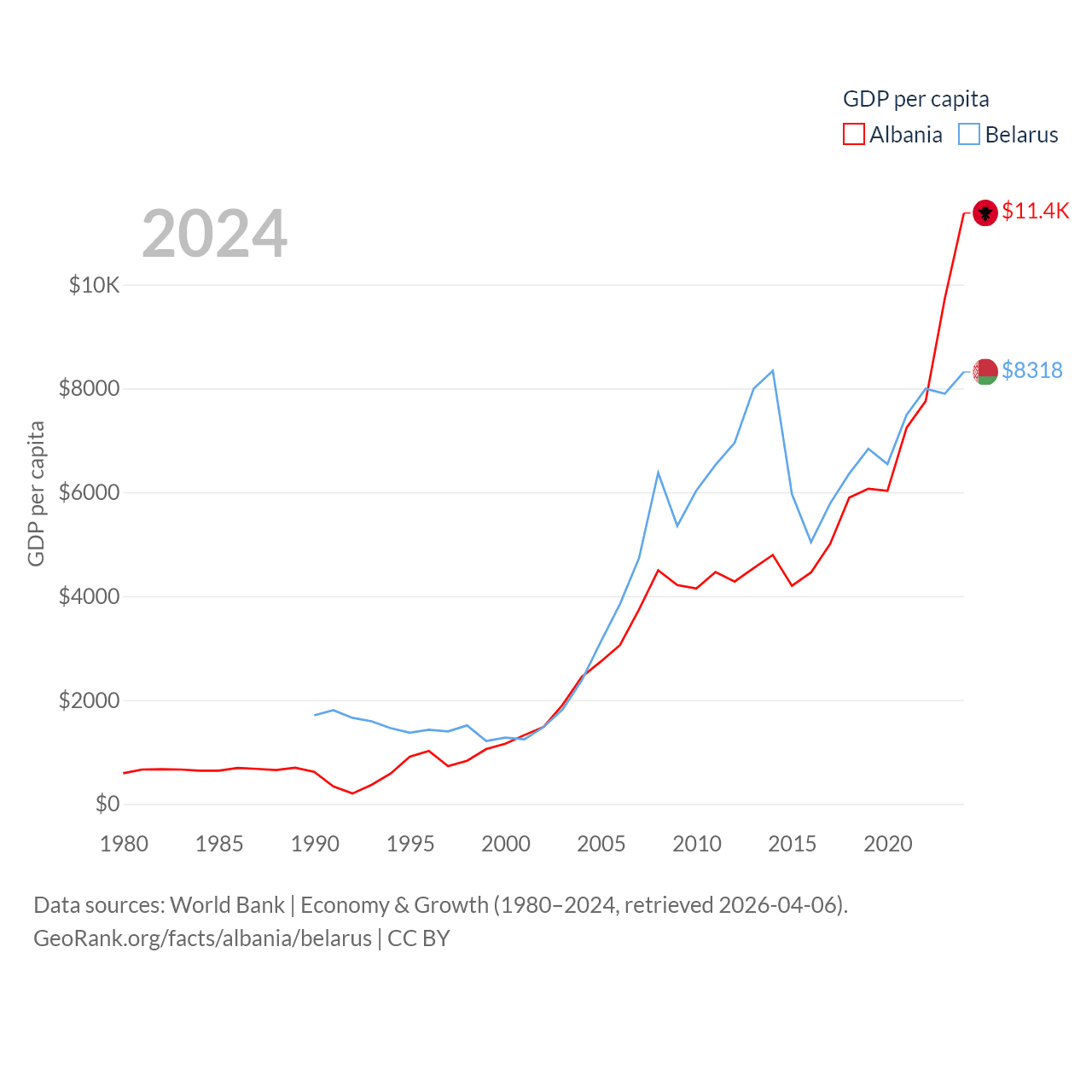Data sources: World Bank | Economy & Growth (1980–2024, retrieved 2026-04-06).