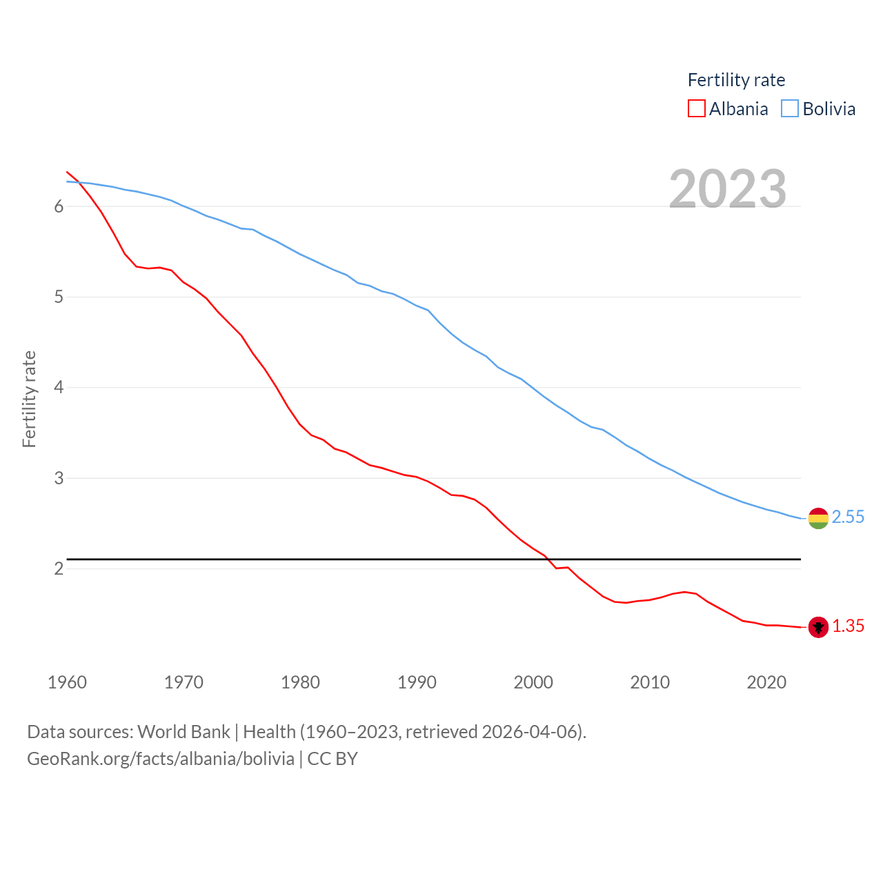 - World Bank | Health (1960–2025, retrieved 2026-04-06)