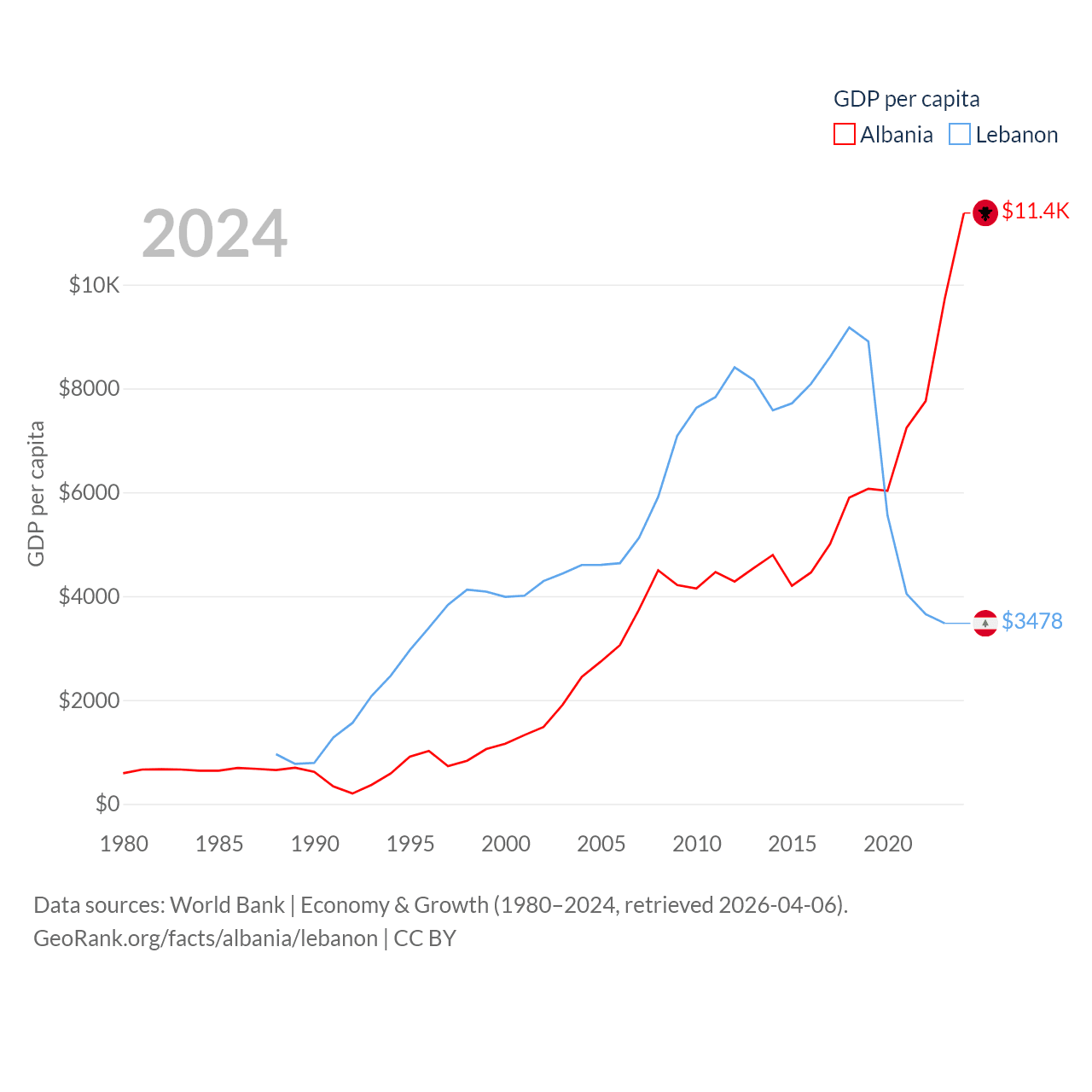 Data sources: World Bank | Economy & Growth (1980–2024, retrieved 2026-04-06).