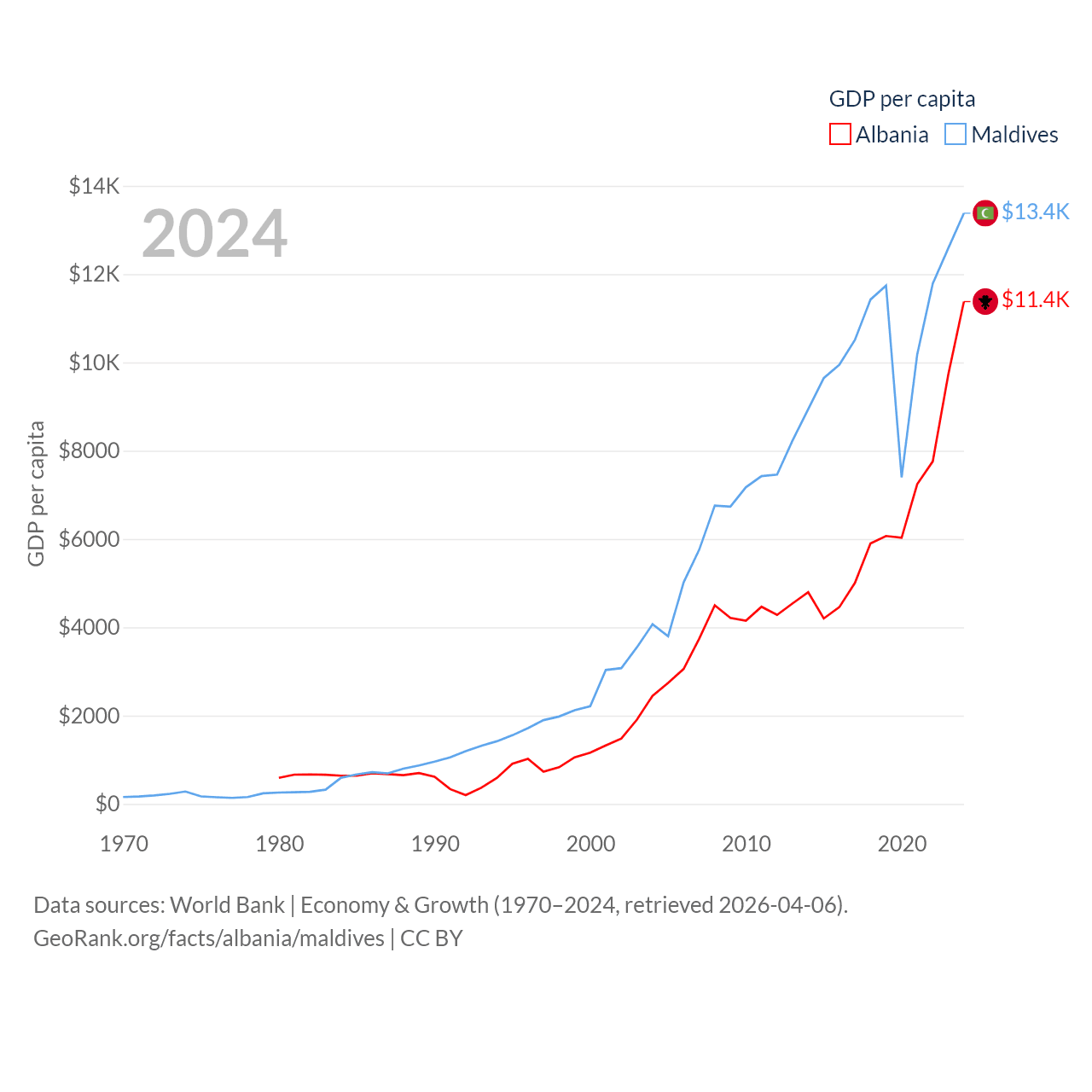 Albania and Maldives economies compared