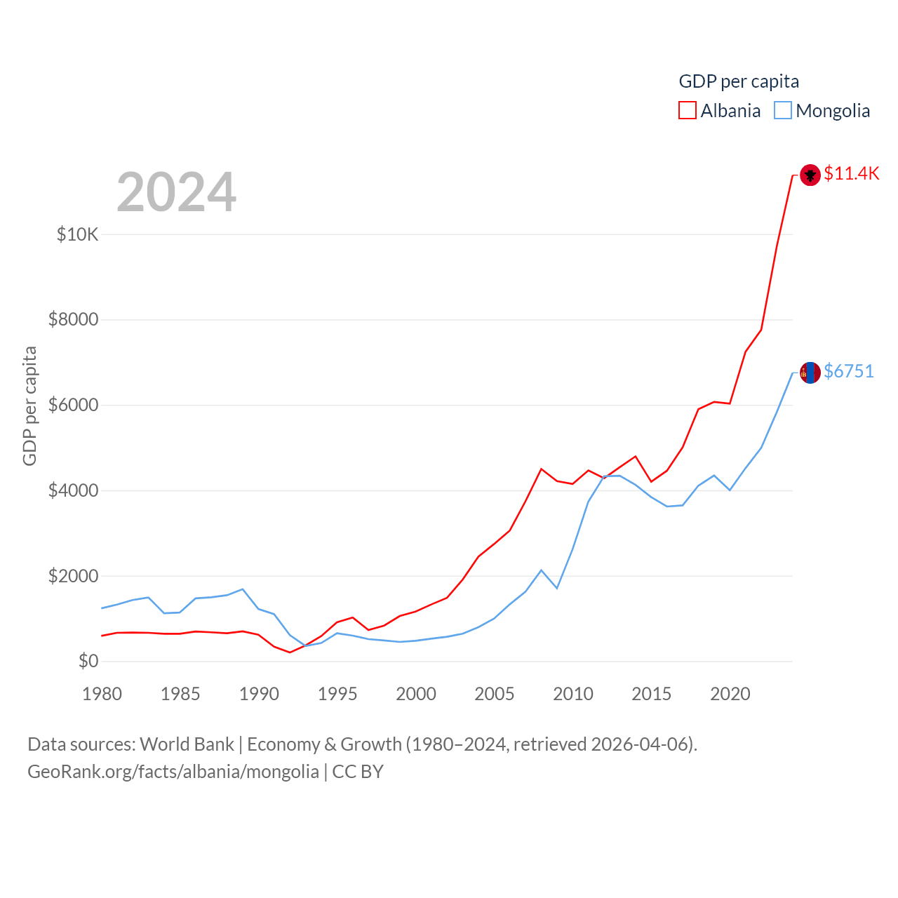 Data sources: World Bank | Economy & Growth (1980–2024, retrieved 2026-04-06).