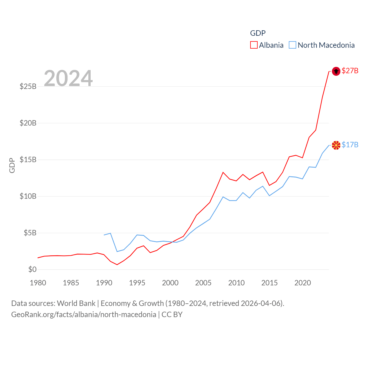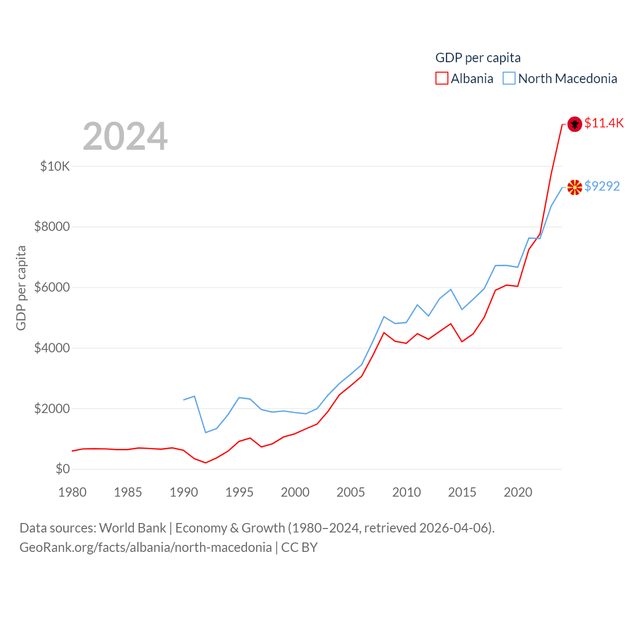 Data sources: World Bank | Economy & Growth (1980–2024, retrieved 2026-04-06).