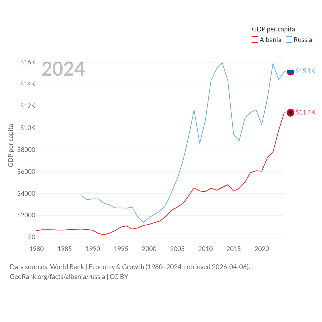 Data sources: World Bank | Economy & Growth (1980–2024, retrieved 2026-04-06).