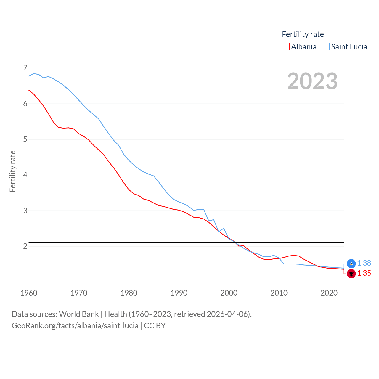 Albania and Saint Lucia: Comparison Charts