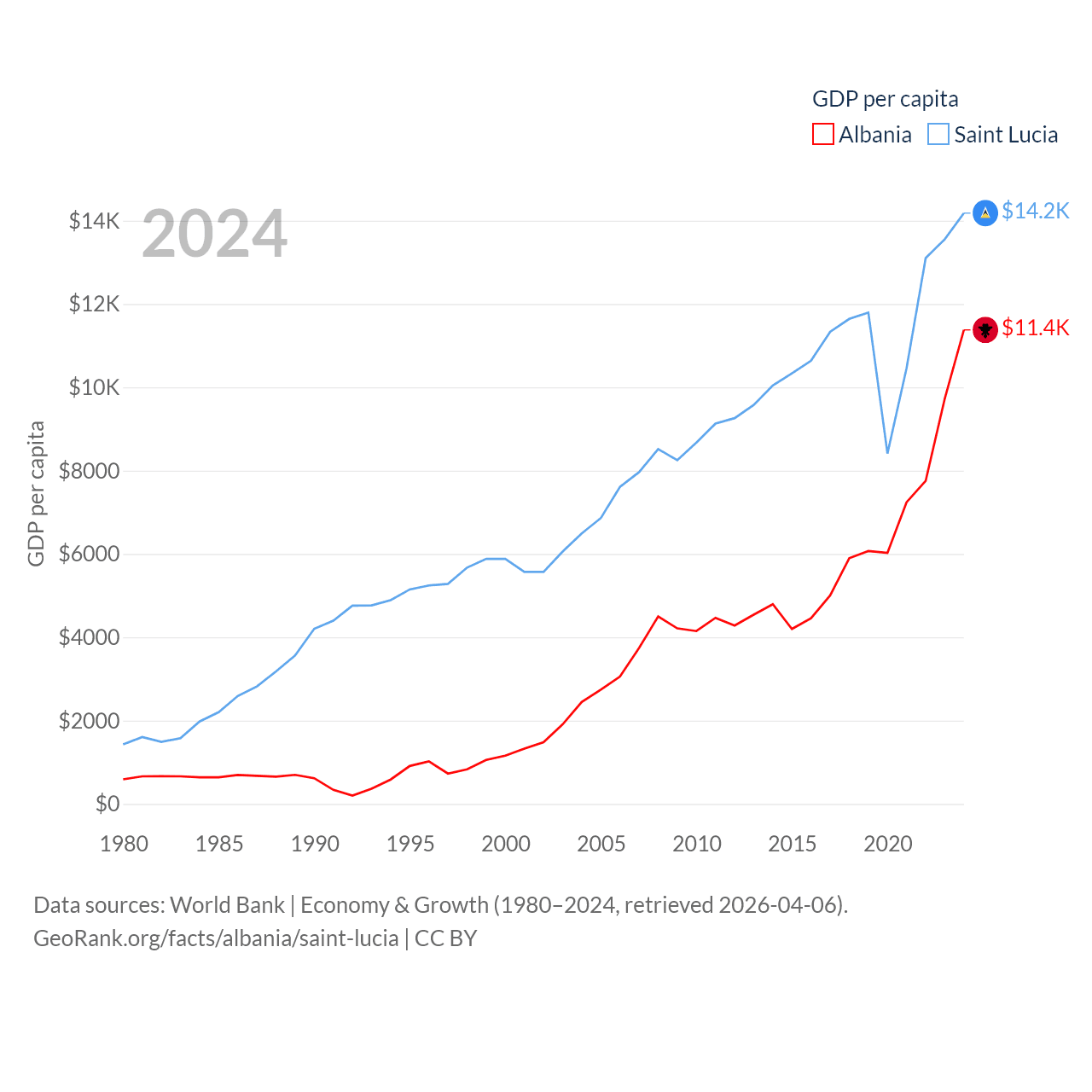 Data sources: World Bank | Economy & Growth (1980–2024, retrieved 2026-04-06).