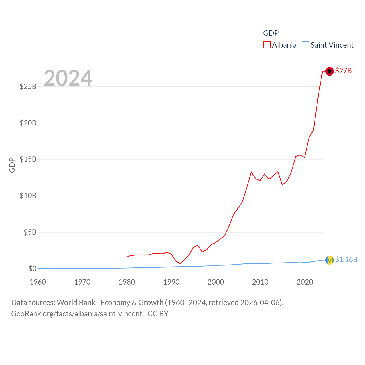 Albania and Saint Vincent economies compared