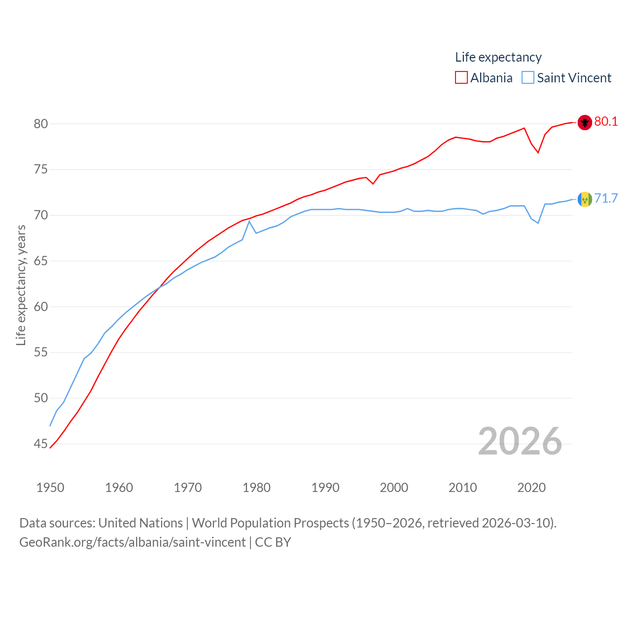 Albania and Saint Vincent: Comparison Charts