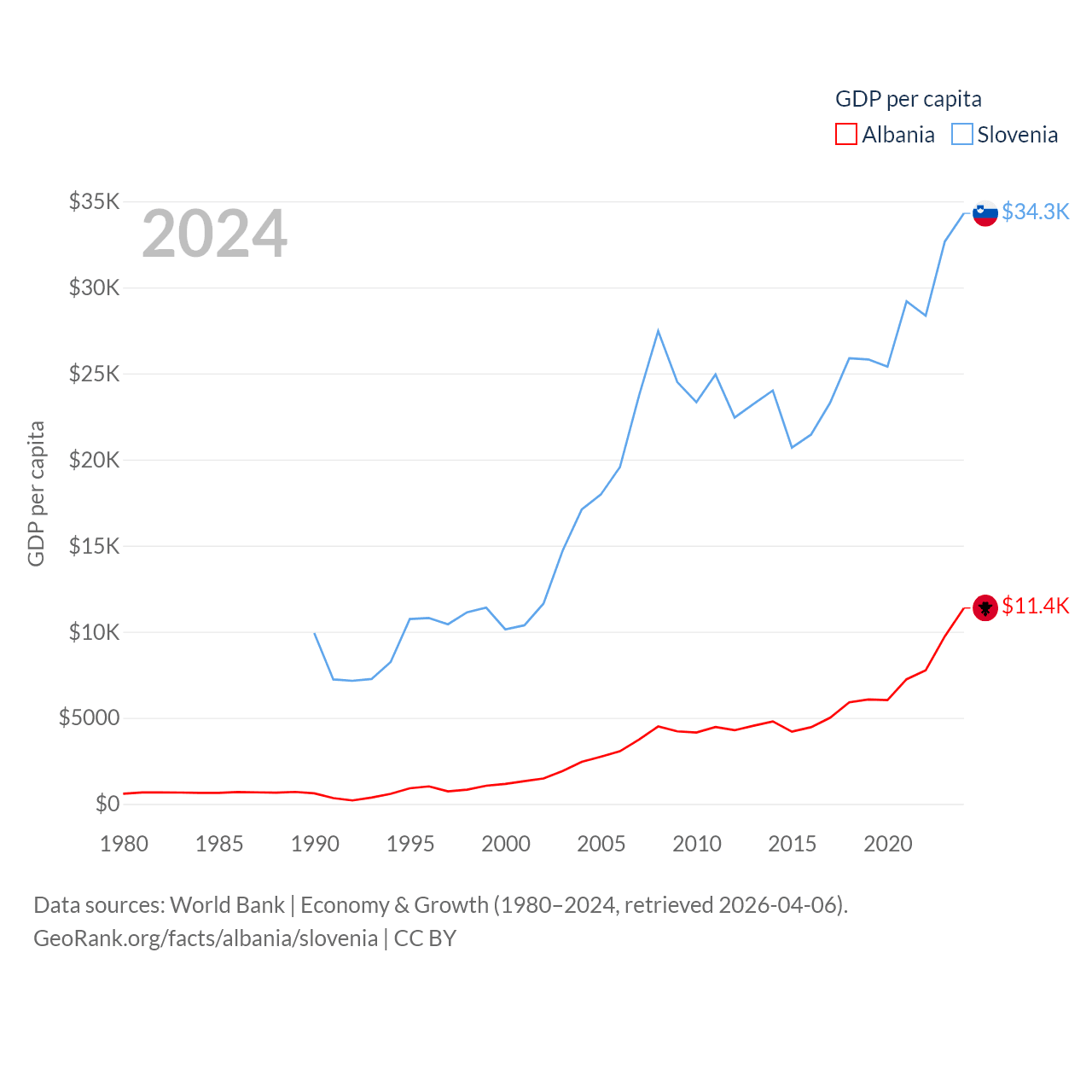 Data sources: World Bank | Economy & Growth (1980–2024, retrieved 2026-04-06).