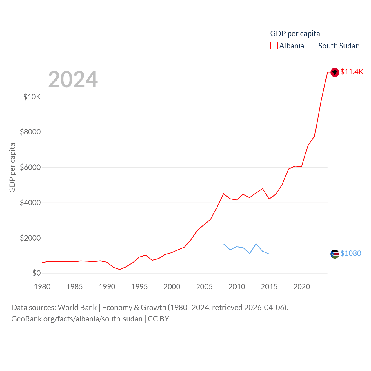Data sources: World Bank | Economy & Growth (1980–2024, retrieved 2026-04-06).
