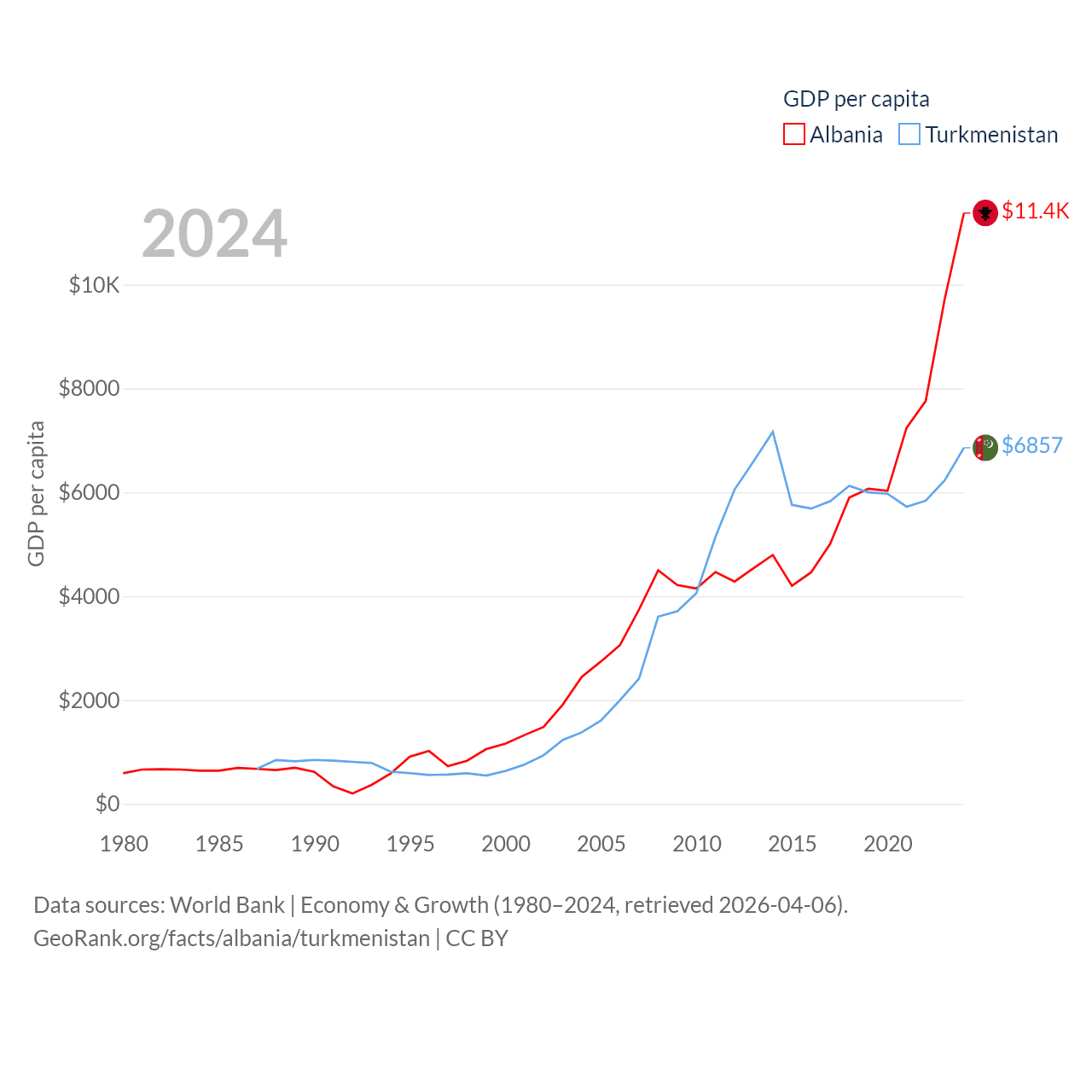 Data sources: World Bank | Economy & Growth (1980–2024, retrieved 2026-04-06).