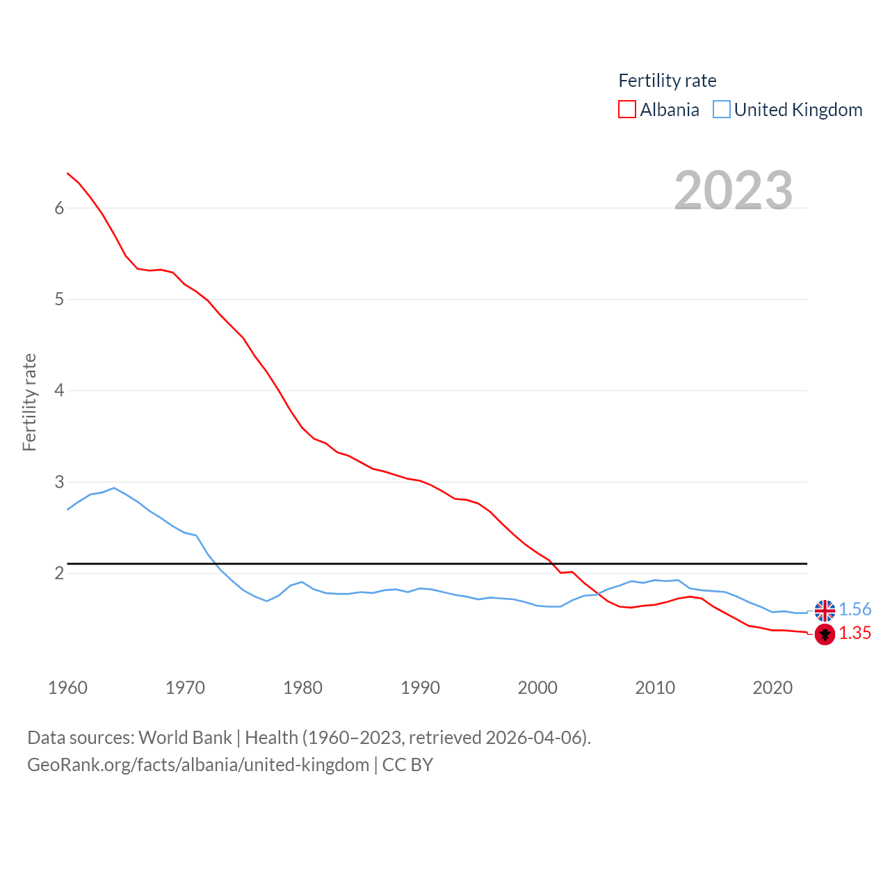 - World Bank | Health (1960–2025, retrieved 2026-04-06)