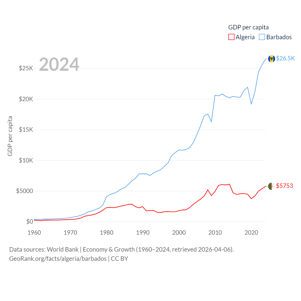 Algeria and Barbados economies compared