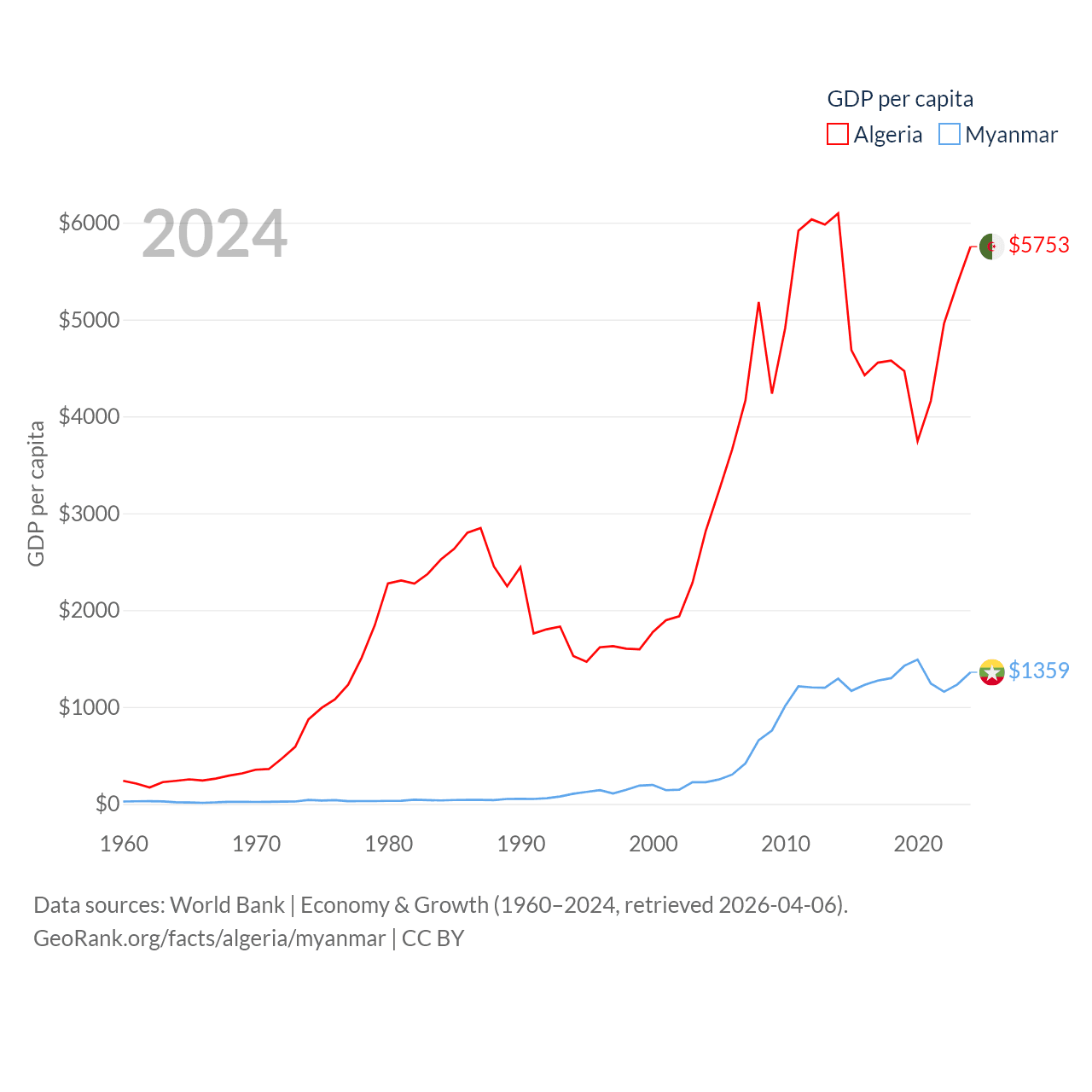 Algeria and Myanmar economies compared