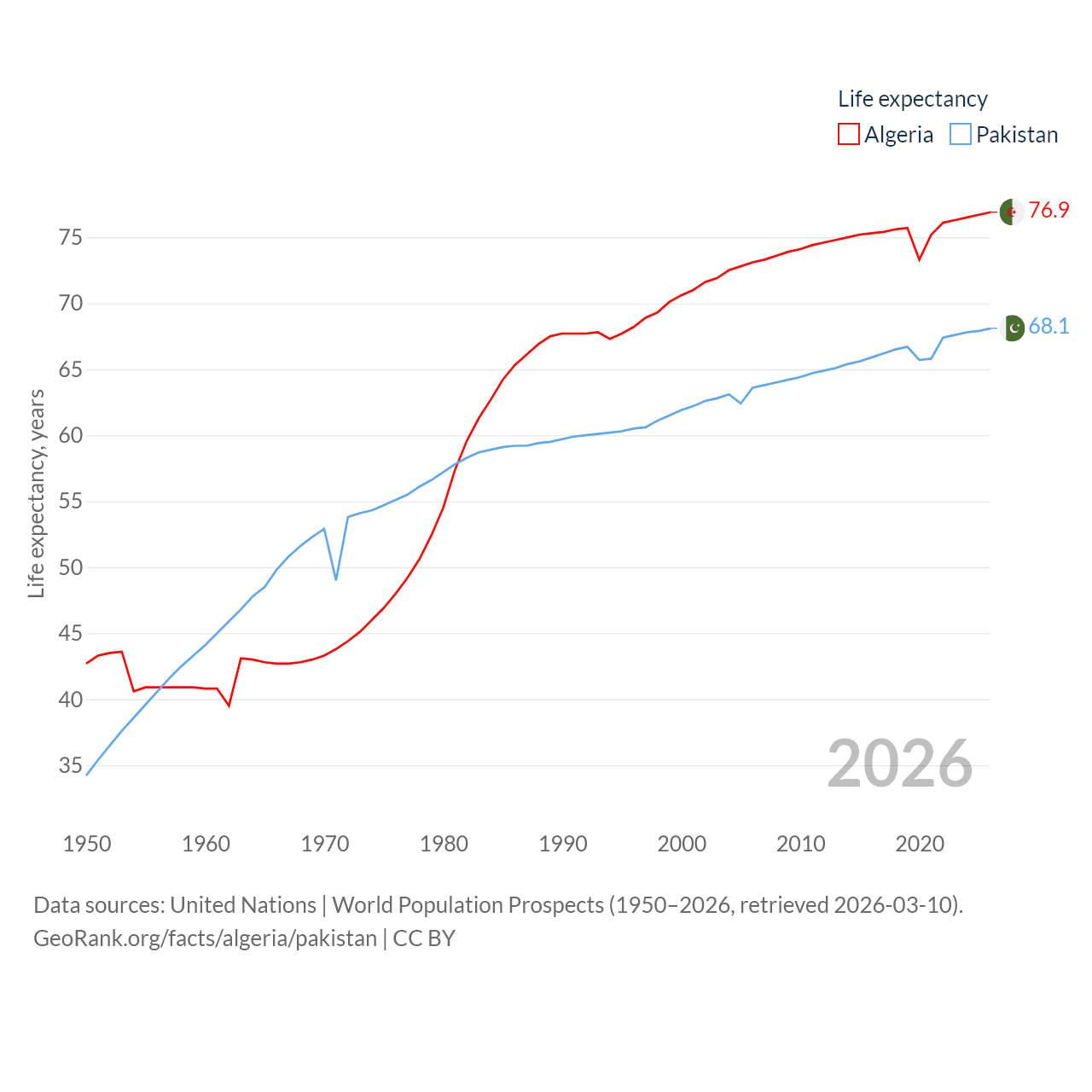 - United Nations | World Population Prospects (1950–2026, retrieved 2026-03-10)